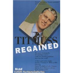 <B>PBS Masterpiece Theatre, Paradise Postponed, Titmuss Regained (1990)</B></I> (2) Bus Shelter Posters (30" X 46"). Paradise Postponed, PBS Mobil Masterpiece/Mystery, 1986, Rolled, US, Photo of town as seen from river. Author: John Mortimer. Titmuss Regained, PBS Mobil Masterpiece/Mystery, 1992, Rolled, US, Photo of Titmuss, David Threlfall, Kristin Scott Thomas. Story by John Mortimer. Very Fine- condition. 2 items
