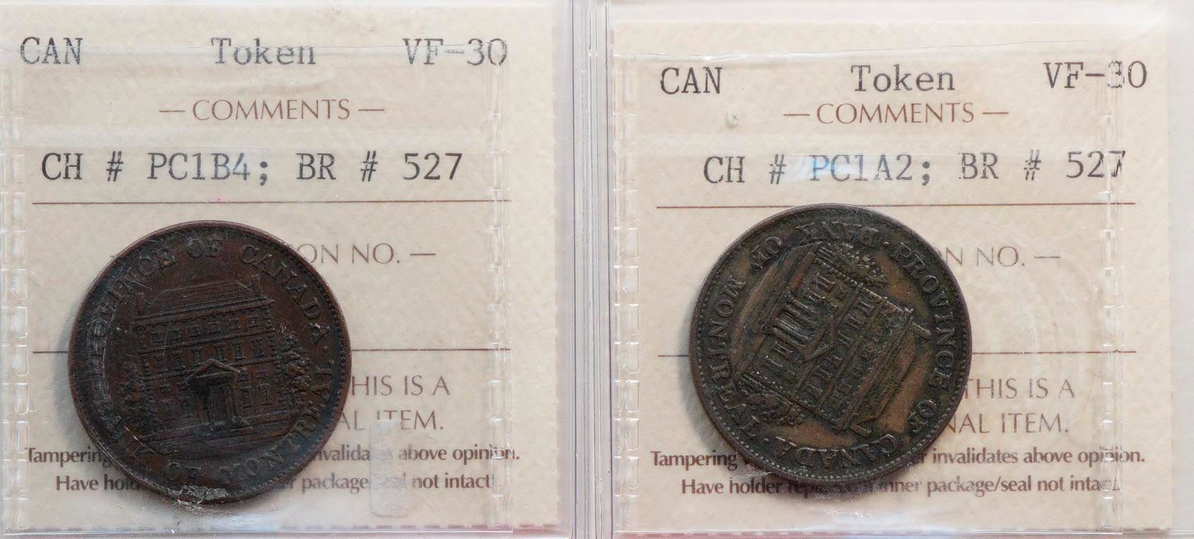 PC-1A2, Br: 527 ICCS VF30, PC1B4. Br:527 ICCS VF30. Lot of 2 pieces