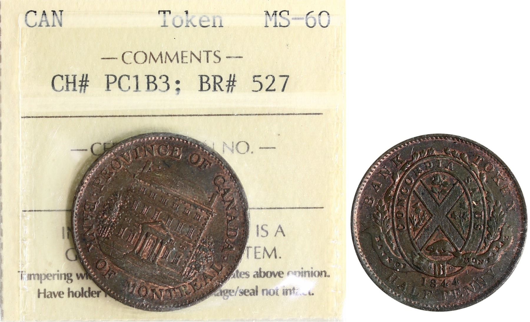 PC-1B3, Br:# 527, ICCS MS-60. Traces of Red lustre.