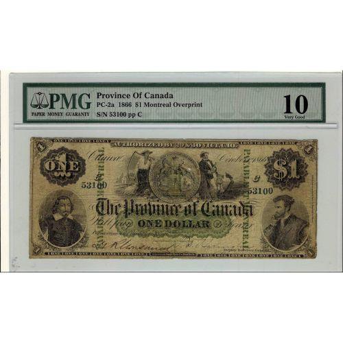 PC-2a 1866 $1 #53100 Montreal PMG VG-10, couple of pinholes, rare.