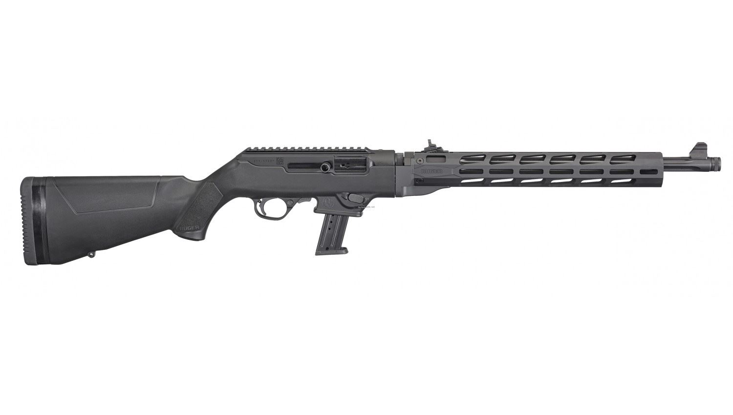 Ruger PC9 Carbine w/ M-LOK Rail Features: This model ships with a 10-round magazine for consumers in those states which limit magazine capacity. CNC-milled handguard that is Type III hard-coat anodized aluminum for maximum durability, with Magpul® M-LOK® accessory attachment slots on all four sides for easy mounting of M-LOK-compatible rails and accessories. Factory-installed, barrel-mounted picatinny rail allows for the forward mounting of optics. Interchangeable magazine wells for use of common Ruger® and Glock® magazines. Ships with SR-Series/Security-9® pistol magazine well installed and an additional magazine well accepting Glock® magazines is included*. Easy takedown enables quick separation of the barrel/forend assembly from the action for ease of transportation and storage. Takedown is as simple as locking the bolt back and verifying that the rifle is unloaded, pushing a recessed lever, twisting the subassemblies and pulling them apart. Dead blow action features a custom tungsten dead blow weight that shortens bolt travel and reduces felt recoil and muzzle rise. Bolt is machined from heat treated, chrome-moly steel to ensure strength, structural integrity and durability. Reversible magazine release and reversible charging handle to support ambidextrous use or one-handed control manipulation while maintaining a proper firing grip*. Cold hammer-forged, chrome-moly steel barrel with ultra-precise rifling provides exceptional accuracy and longevity. The heavy contour barrel provides consistent accuracy, while barrel fluting sheds unnecessary weight and allows for quick handling. Threaded barrel with included thread protector allows for use of standard muzzle accessories. Soft rubber buttpad with spacers allows the rifle to be properly sized for different shooters or varying levels of outerwear or defensive gear (three, 1/2" spacers included). Durable, glass-filled nylon synthetic buttstock features a proprietary texture for enhanced control and an integral sling mount for rapid sling attachment . Light, crisp trigger pull with minimal overtravel and positive reset utilizing proven 10/22® trigger components. CNC-machined from an aerospace-grade 7075-T6 aluminum billet, the receiver includes an integrated Picatinny-style† rail and is Type III hard-coat anodized for maximum durability. Also includes: one, SR-Series pistol magazine and hex wrenches for disassembly of the chassis and aluminum handguard, as well as removal of the charging handle. Specifications: Caliber: 9mm Capacity: 10 Action: Semi-Auto Stock: Black Synthetic Receiver: Aluminum Alloy Handguard: Fully Free Float M-LOK Safety: Manual Thumb Finish: Type III Hardcoat Anodized Barrel Length: 18.6" Barrel Twist: 1:10" RH Sights: Blade Front, Adjustable Ghost Ring Rear Part #: 19118