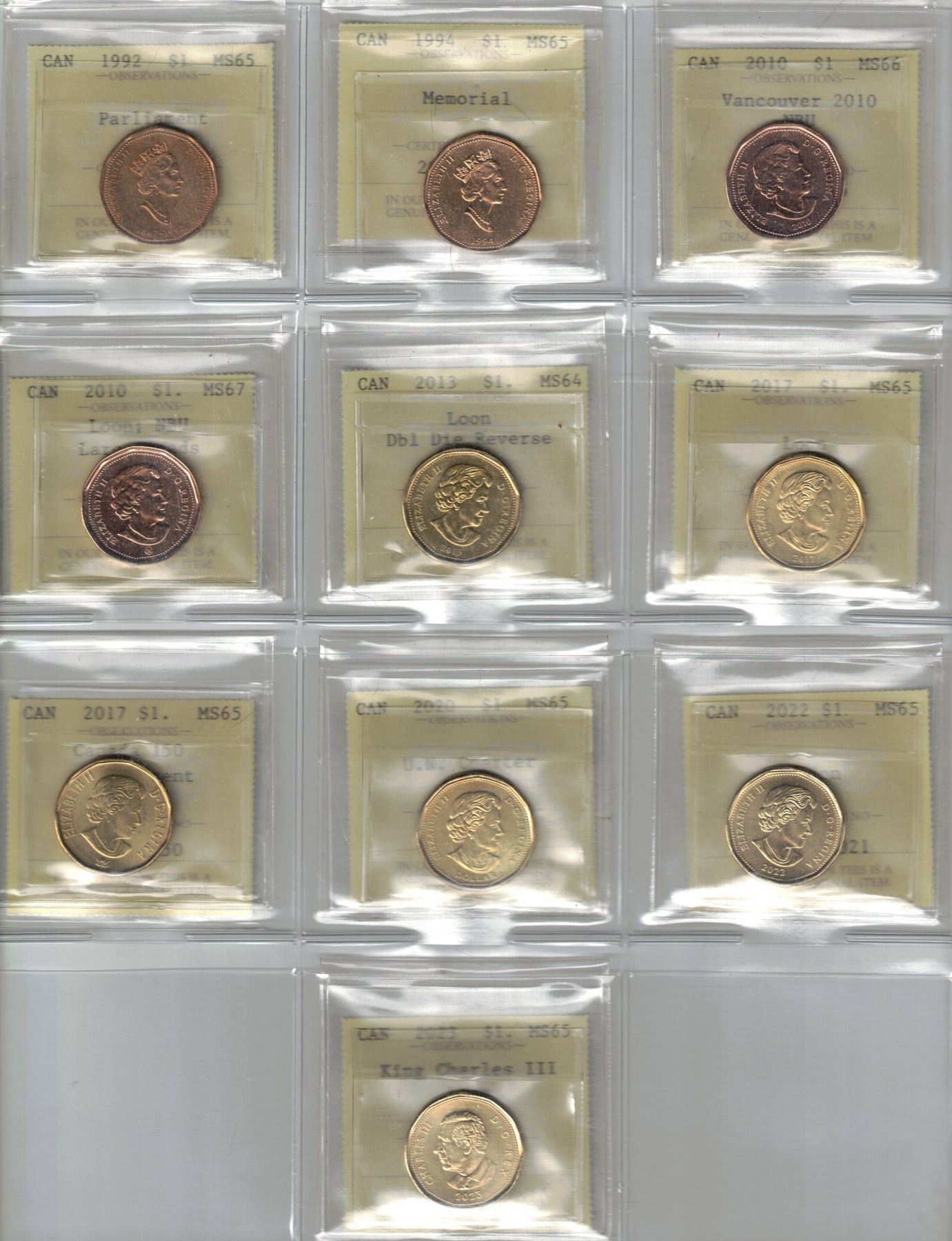 PCCS $1,  10 coin Lot, Professional Coin Certification System