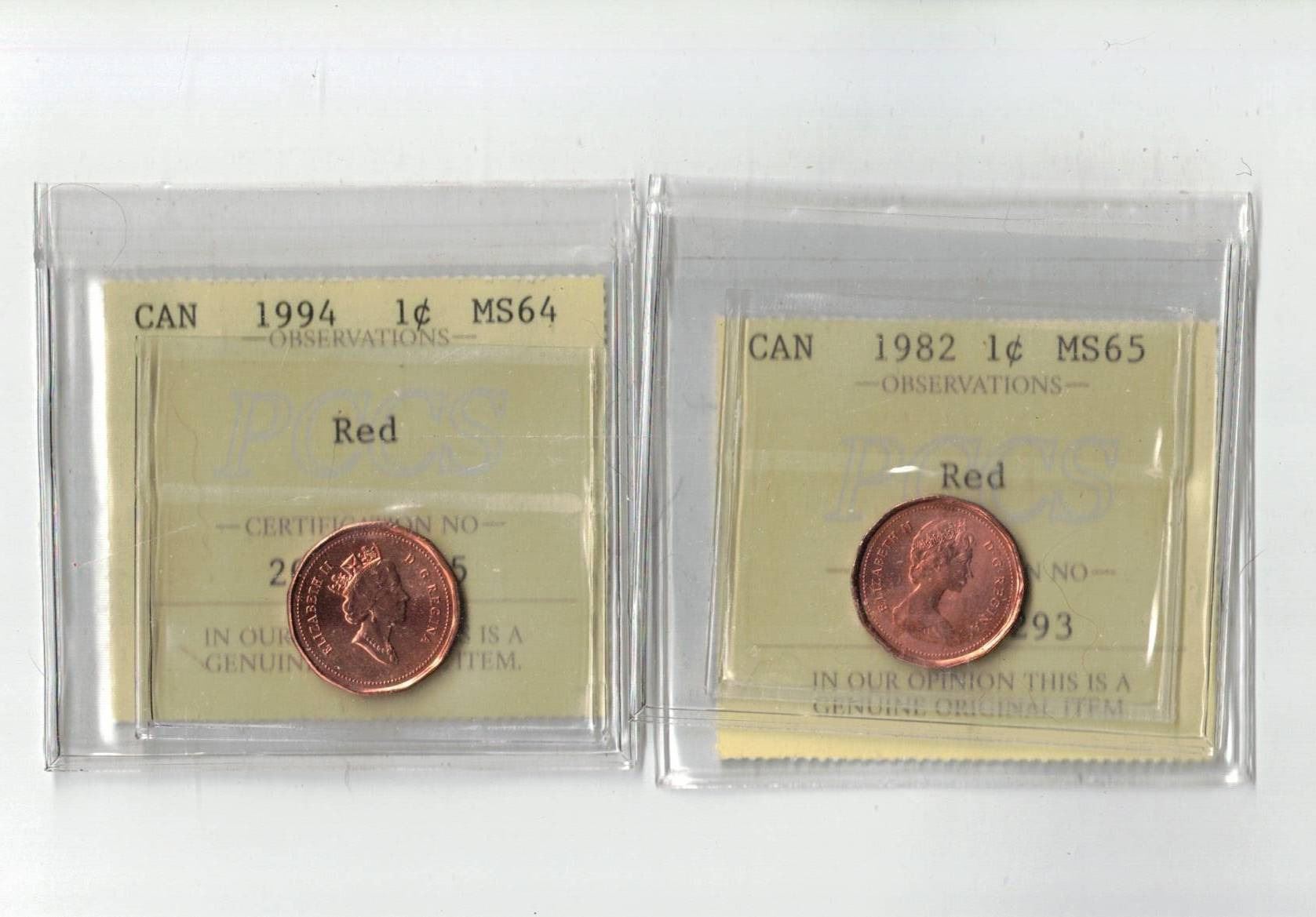 PCCS 1¢, 2 coin Lot Professional Coin Certification System