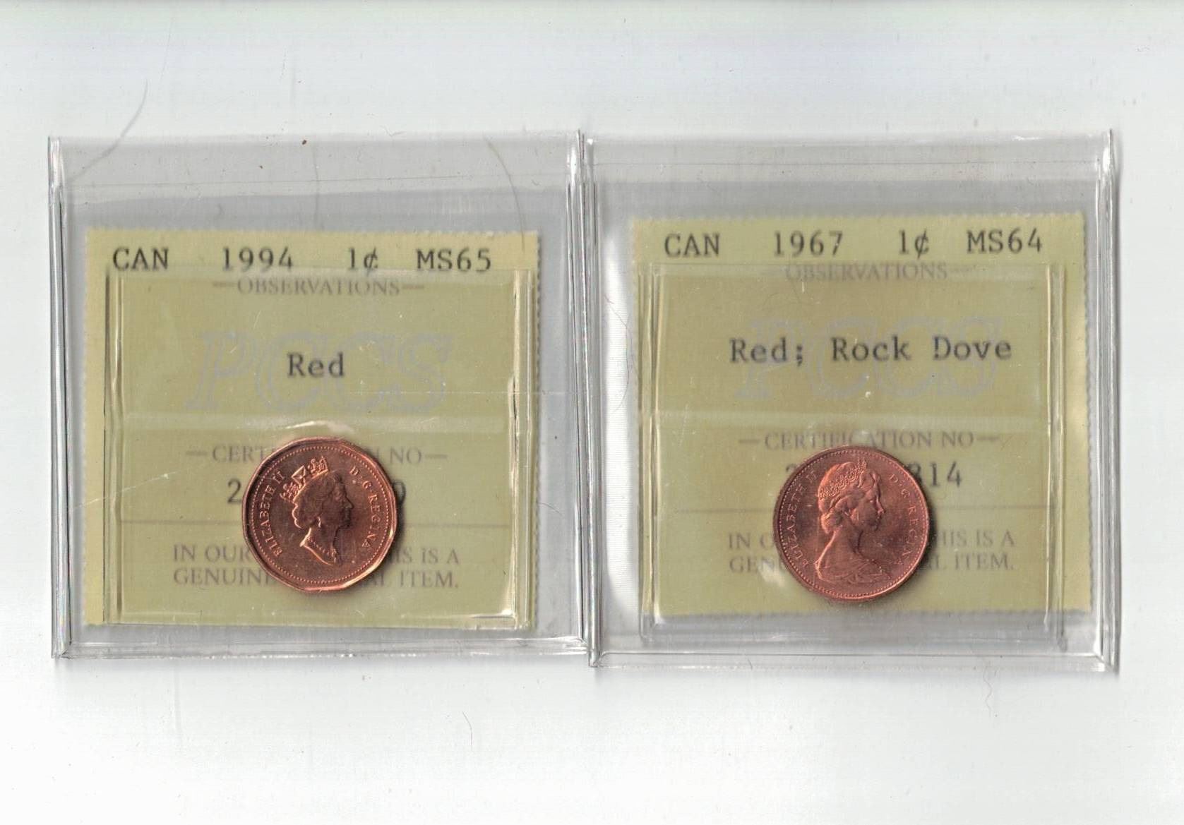 PCCS 1¢, 2 coin Lot Professional Coin Certification System