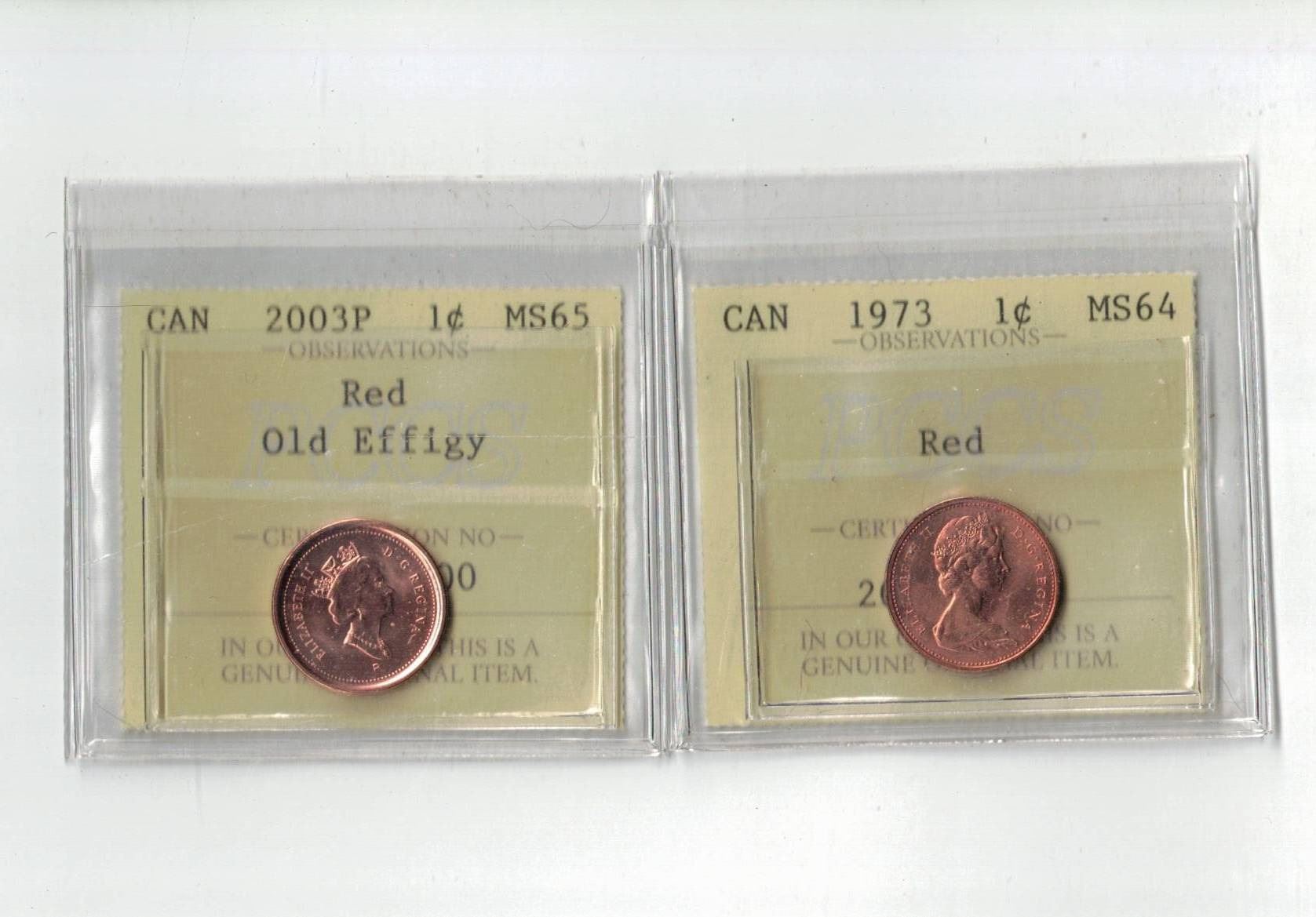 PCCS 1¢, 2 coin Lot Professional Coin Certification System