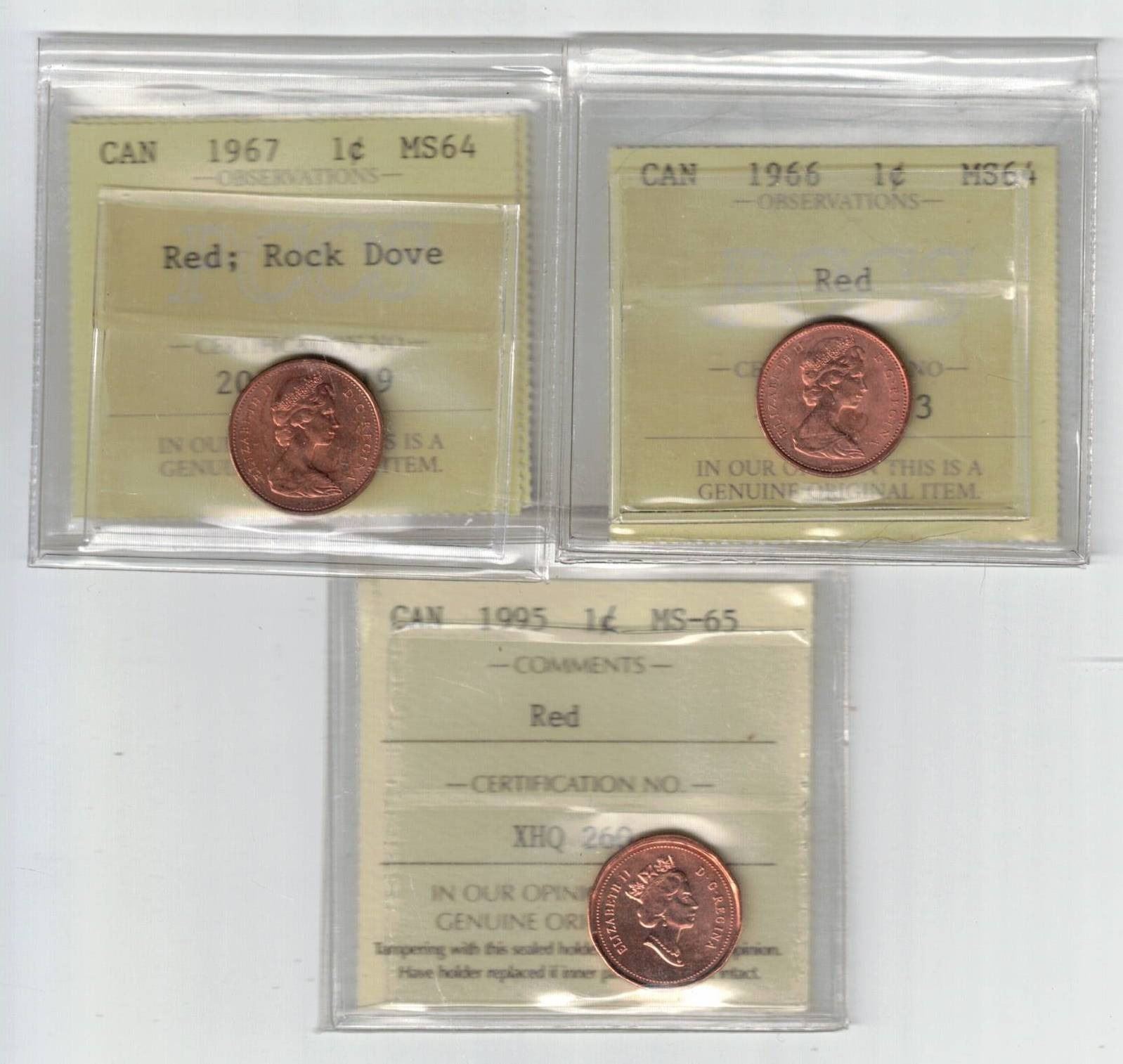PCCS 1966 & 67 Canada 1¢ MS64 Professional Coin Certification System