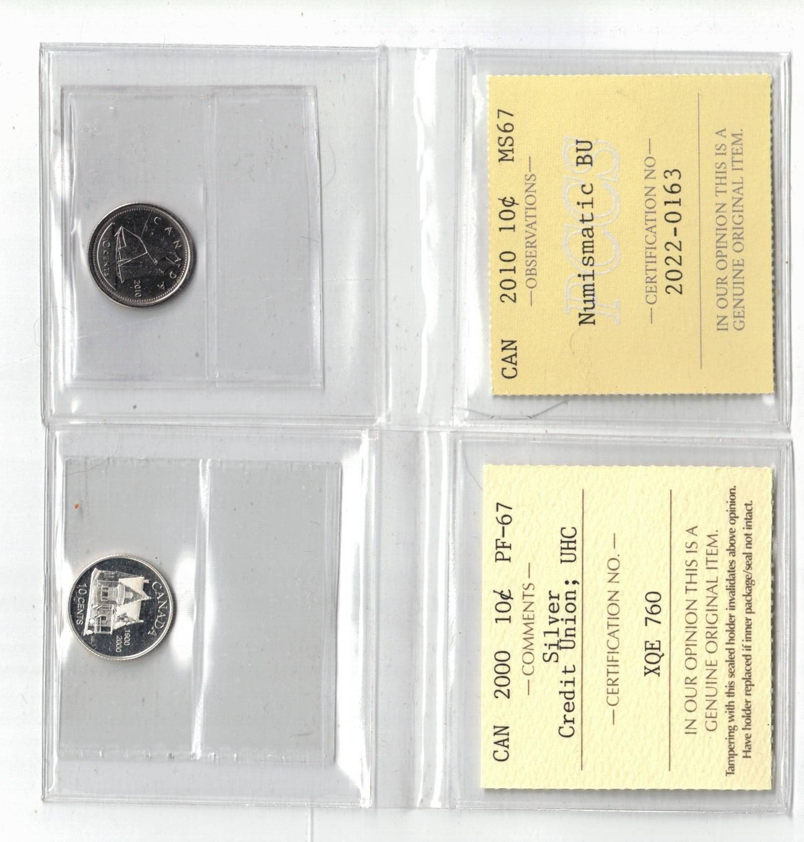 ICCS 2000 10¢ Silver, Credit Union PF67