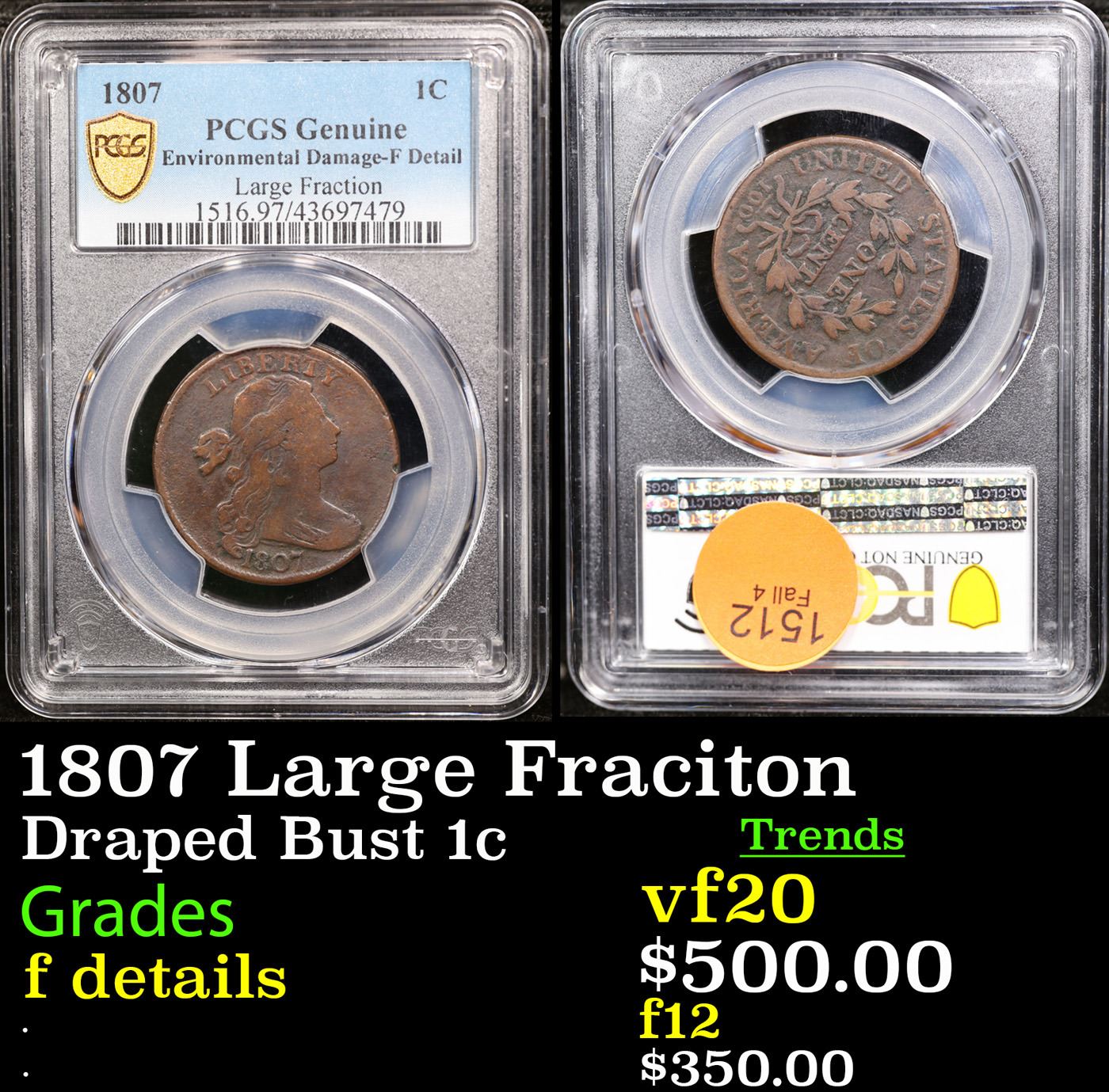 PCGS 1807 Large Fraciton Draped Bust Large Cent 1c Graded f details By PCGS.