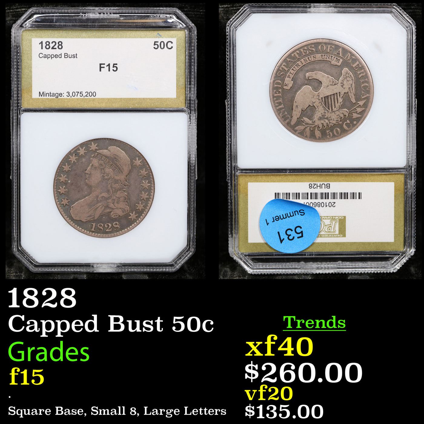 PCGS 1828 Capped Bust Half Dollar 50c Graded f15 By PCGS.