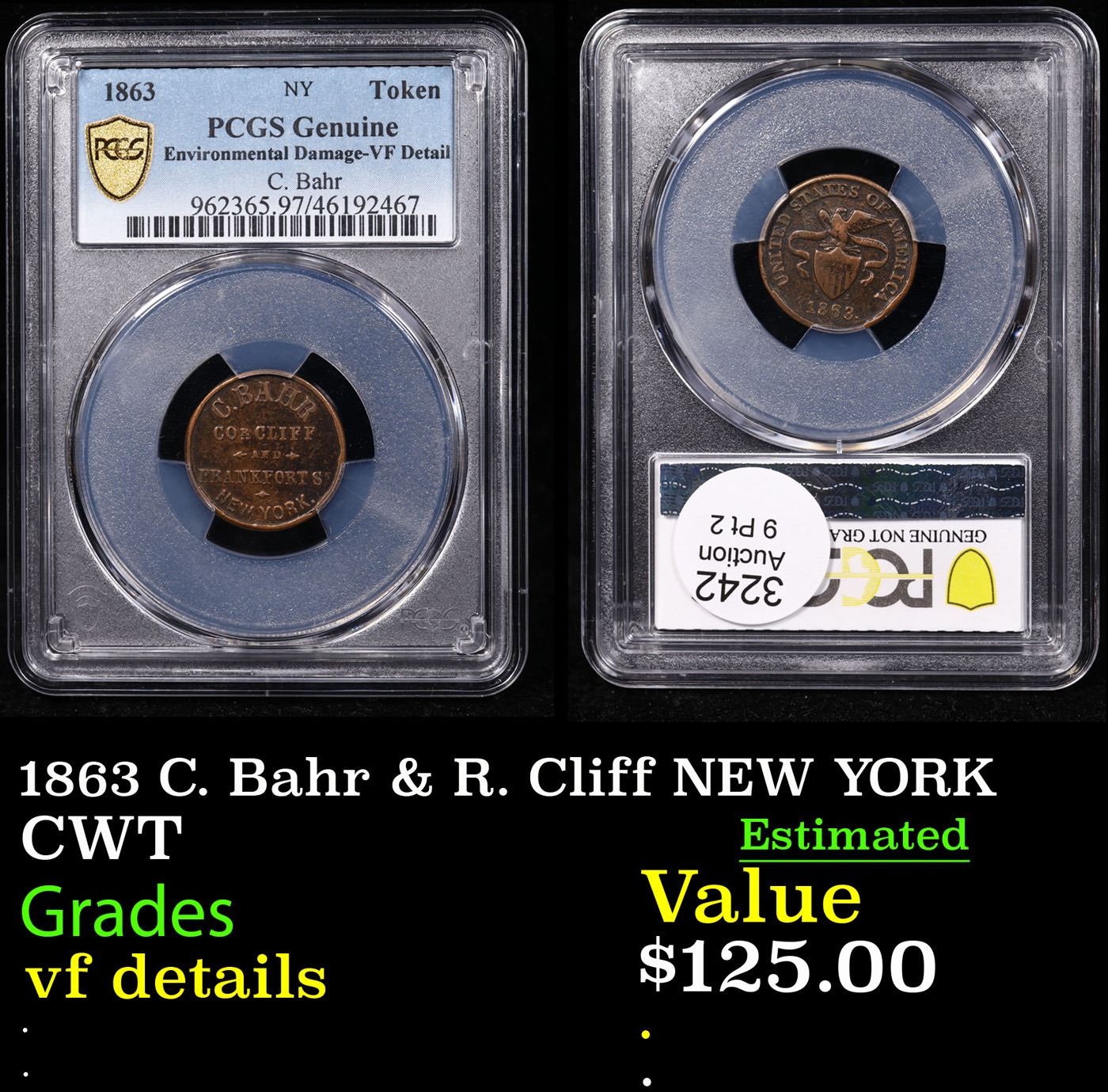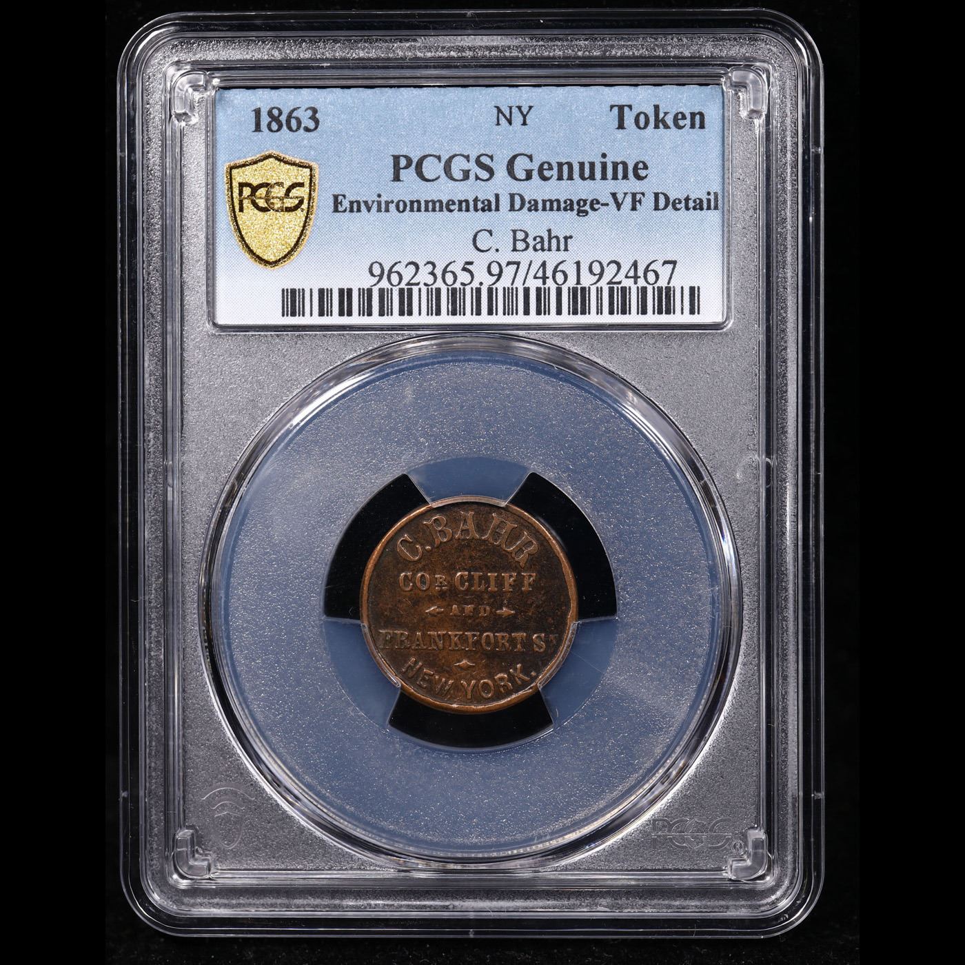 PCGS 1863 C. Bahr & R. Cliff NEW YORK Civil War Token 1c Graded vf details By PCGS.