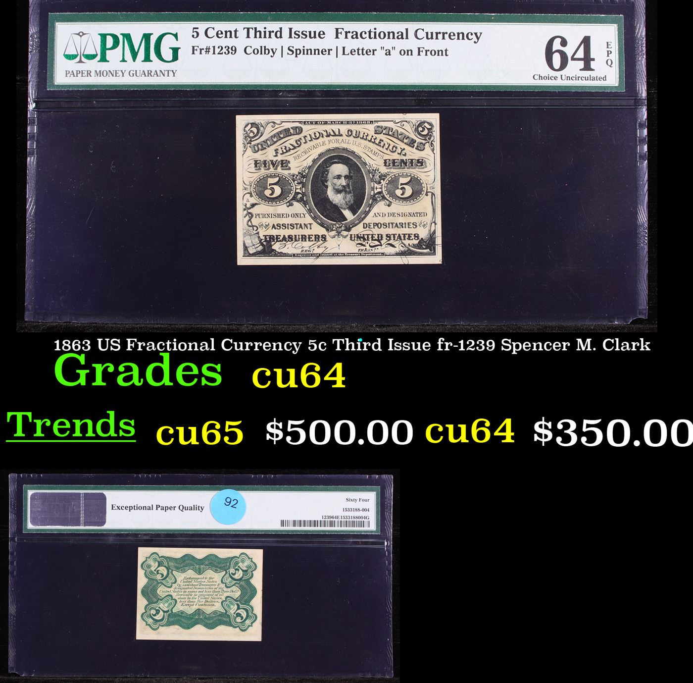 PCGS 1863 US Fractional Currency 5c Third Issue fr-1239 Spencer M. Clark Graded cu64 By PCGS. 0
