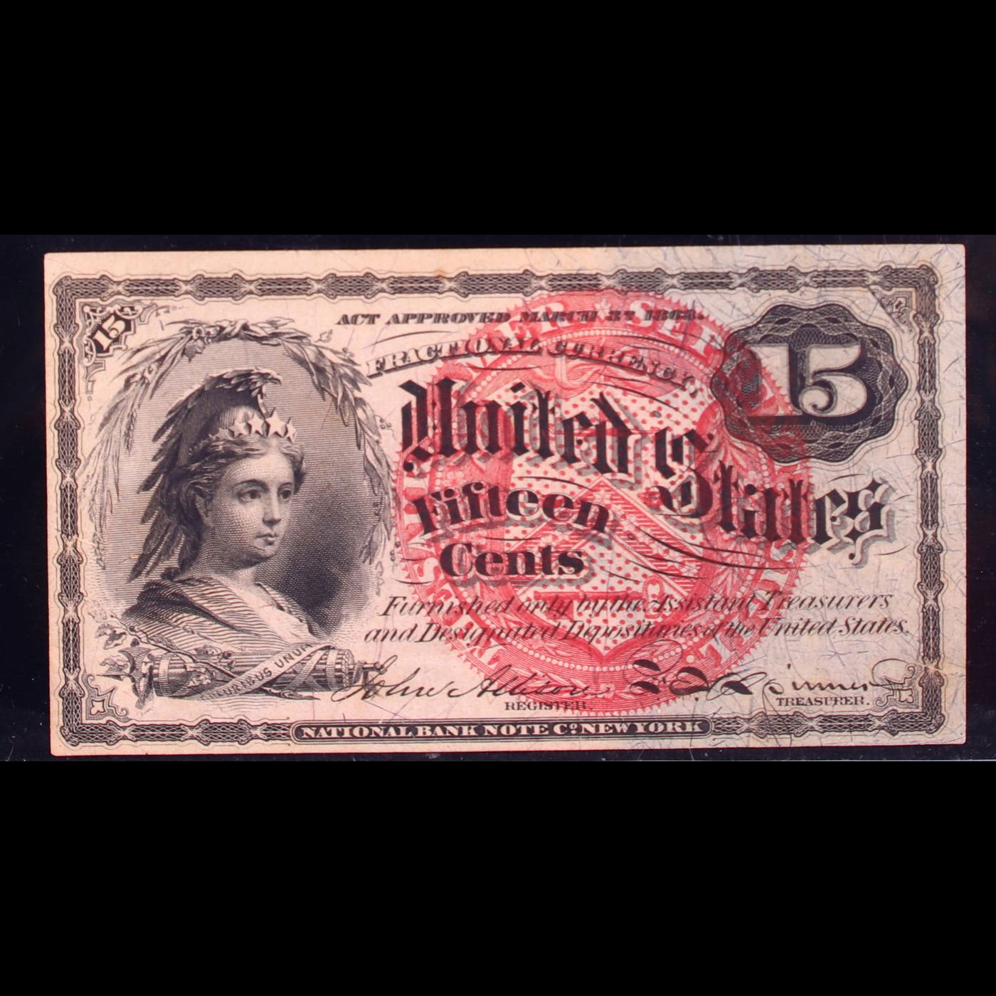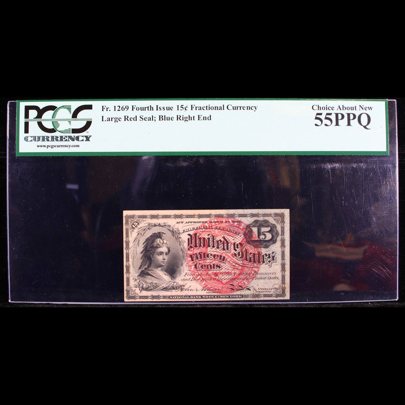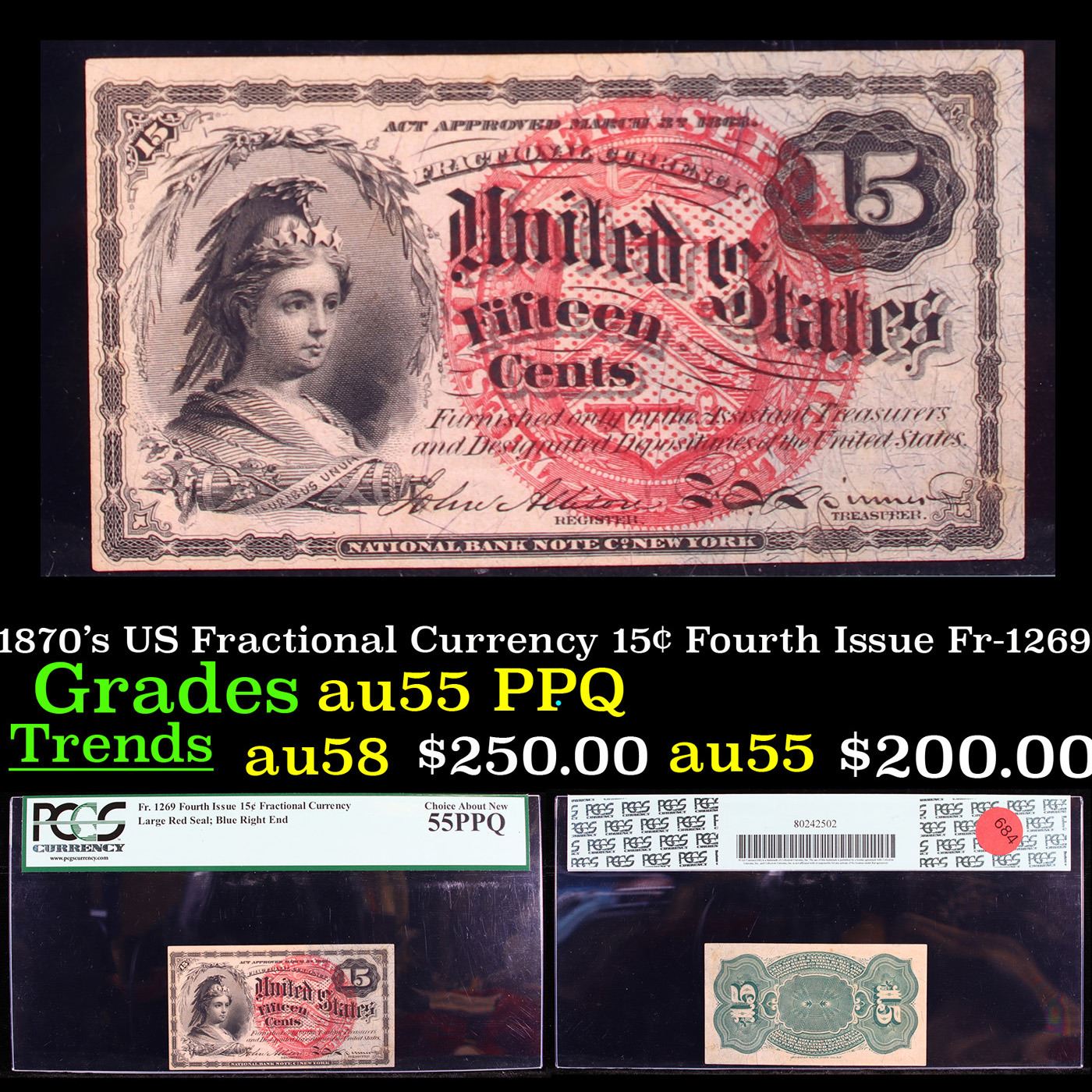 PCGS 1870's US Fractional Currency 15¢ Fourth Issue Fr-1269 Graded au55 PPQ By PCGS