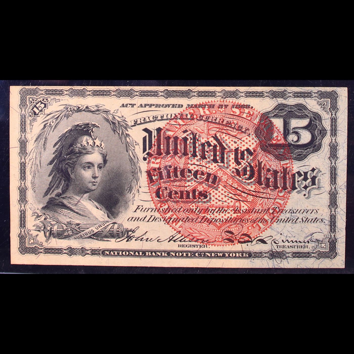 PCGS 1870's US Fractional Currency 15¢ Fourth Issue Fr-1271 Graded au55 PPQ By PCGS.