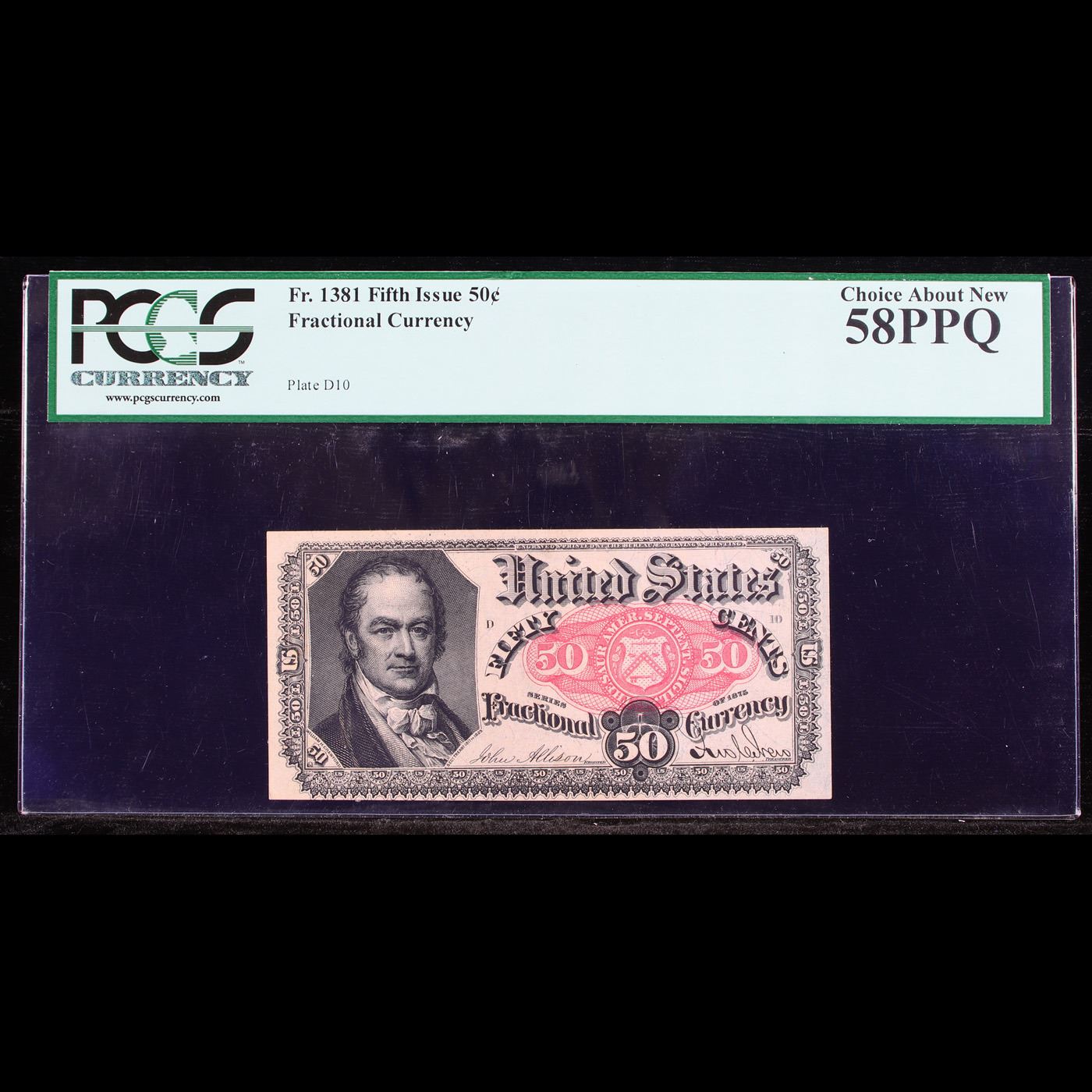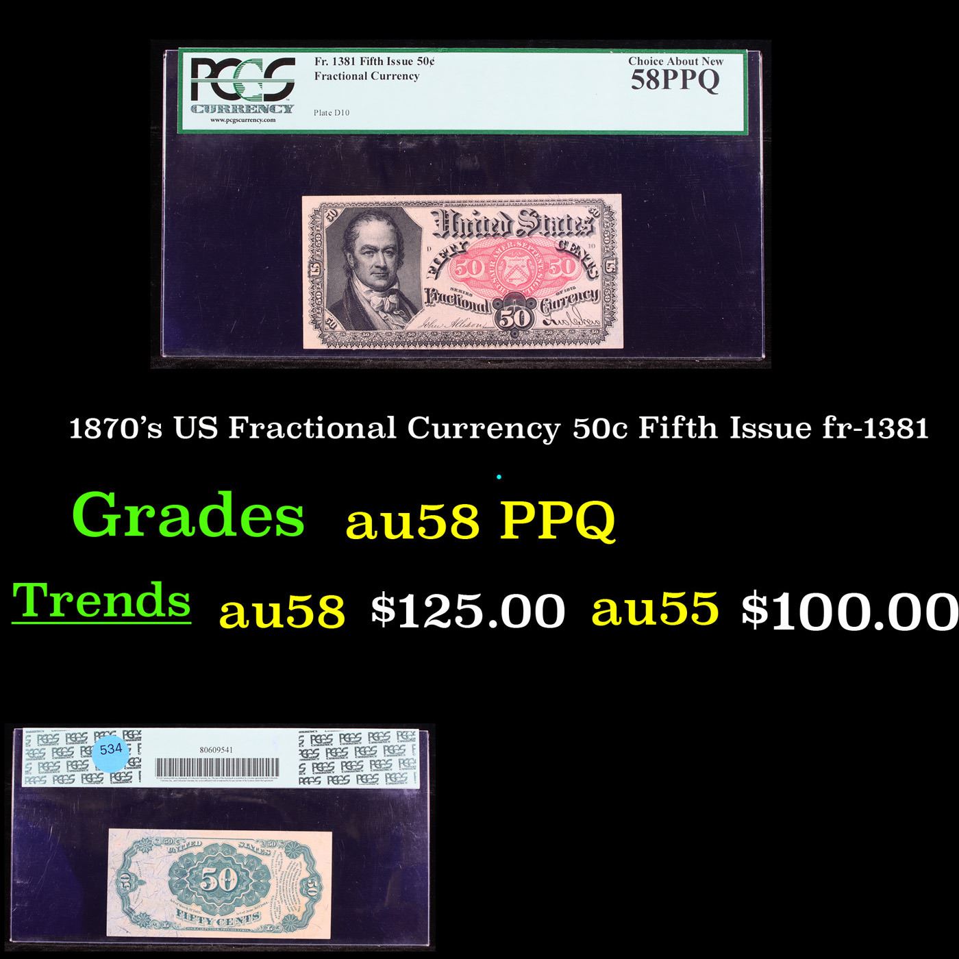 PCGS 1870's US Fractional Currency 50c Fifth Issue fr-1381 Graded au58 PPQ By PCGS. 0