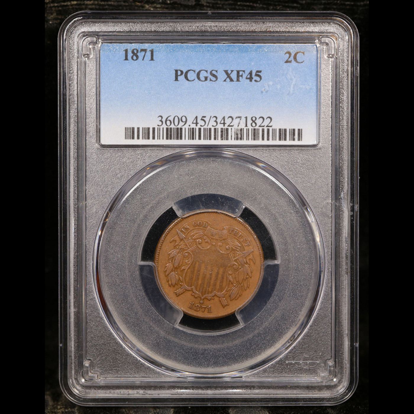 PCGS 1871 Two Cent Piece 2c Graded xf45 By PCGS.