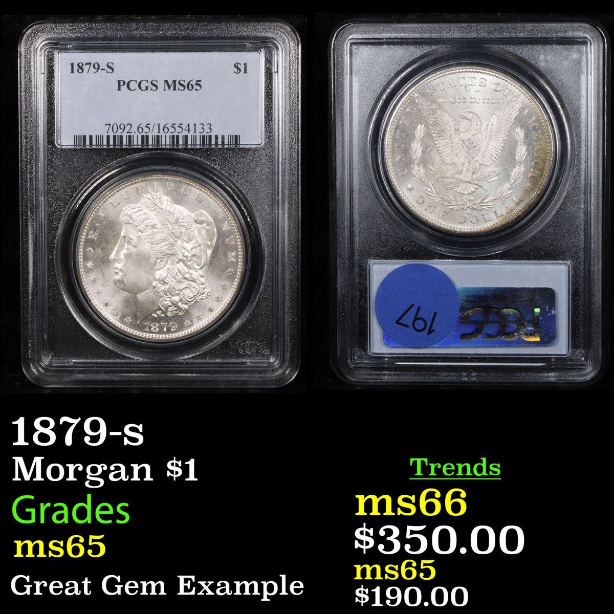 PCGS 1879-s Morgan Dollar $1 Graded ms65 By PCGS.