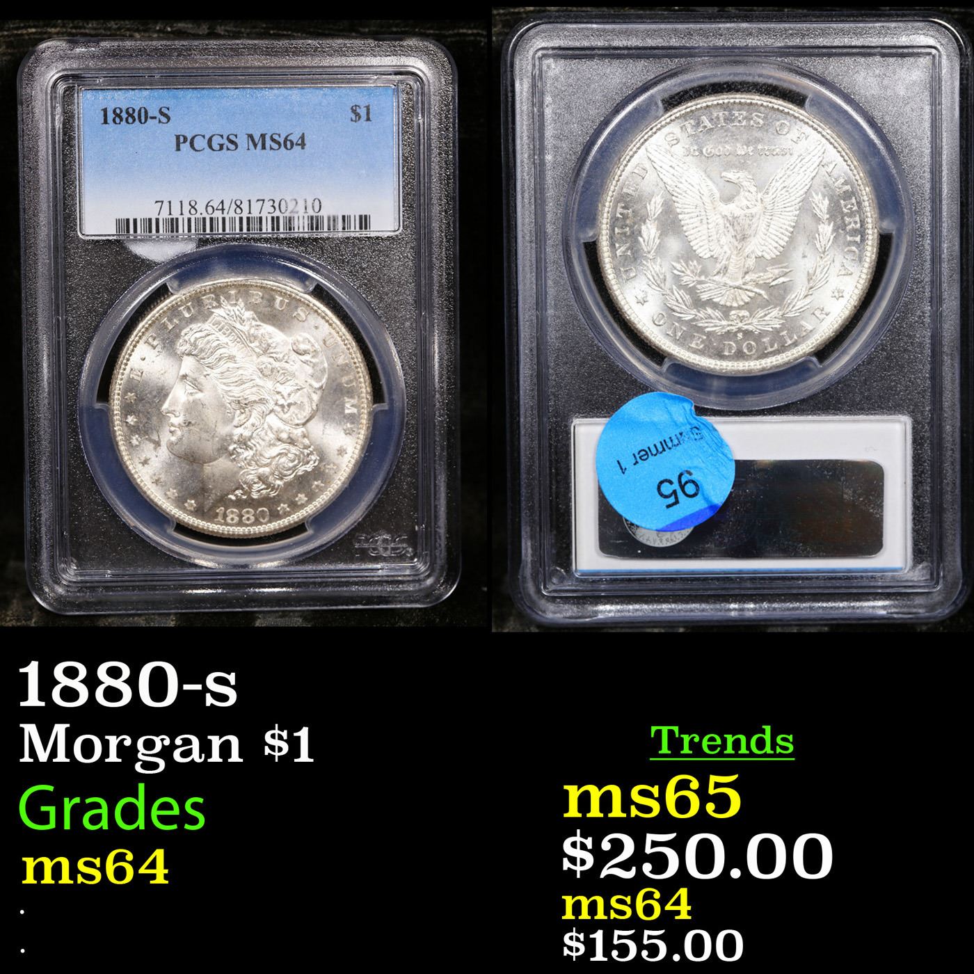 PCGS 1880-s Morgan Dollar $1 Graded ms64 By PCGS.