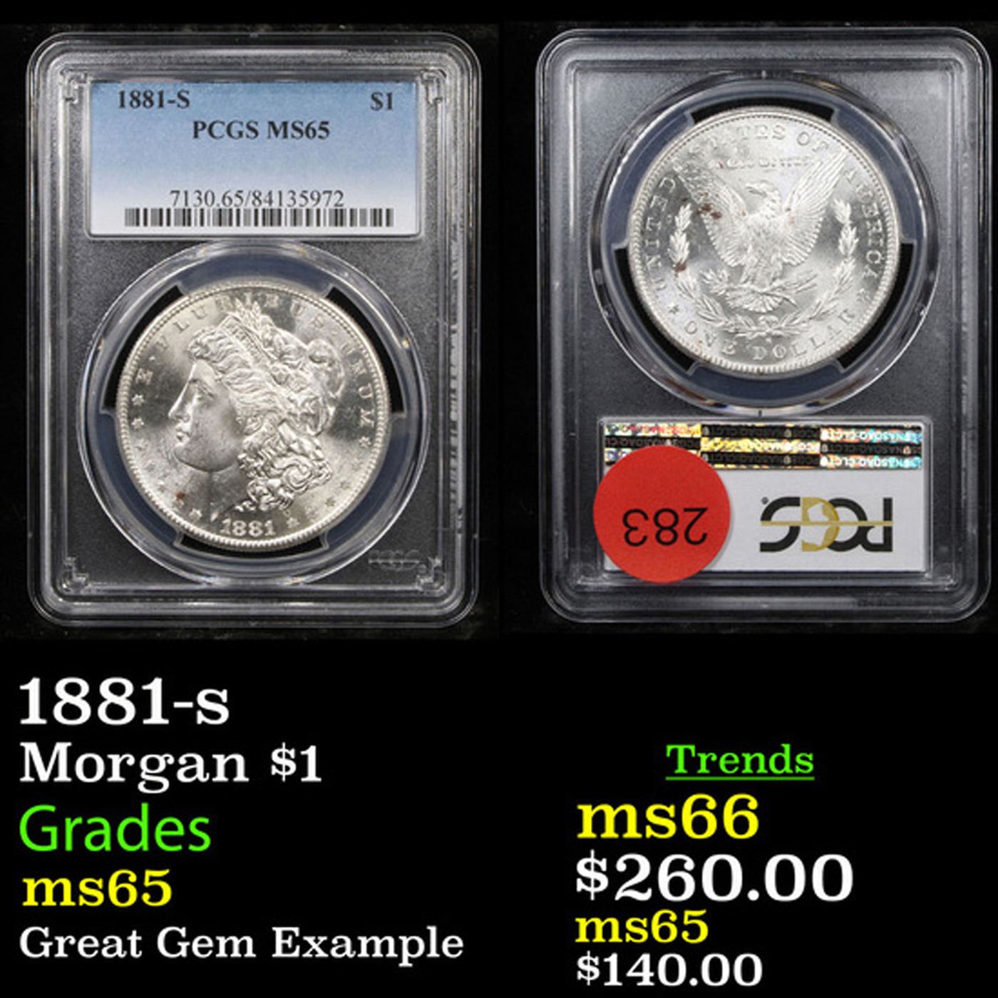 PCGS 1881-s Morgan Dollar $1 Graded ms65 By PCGS.