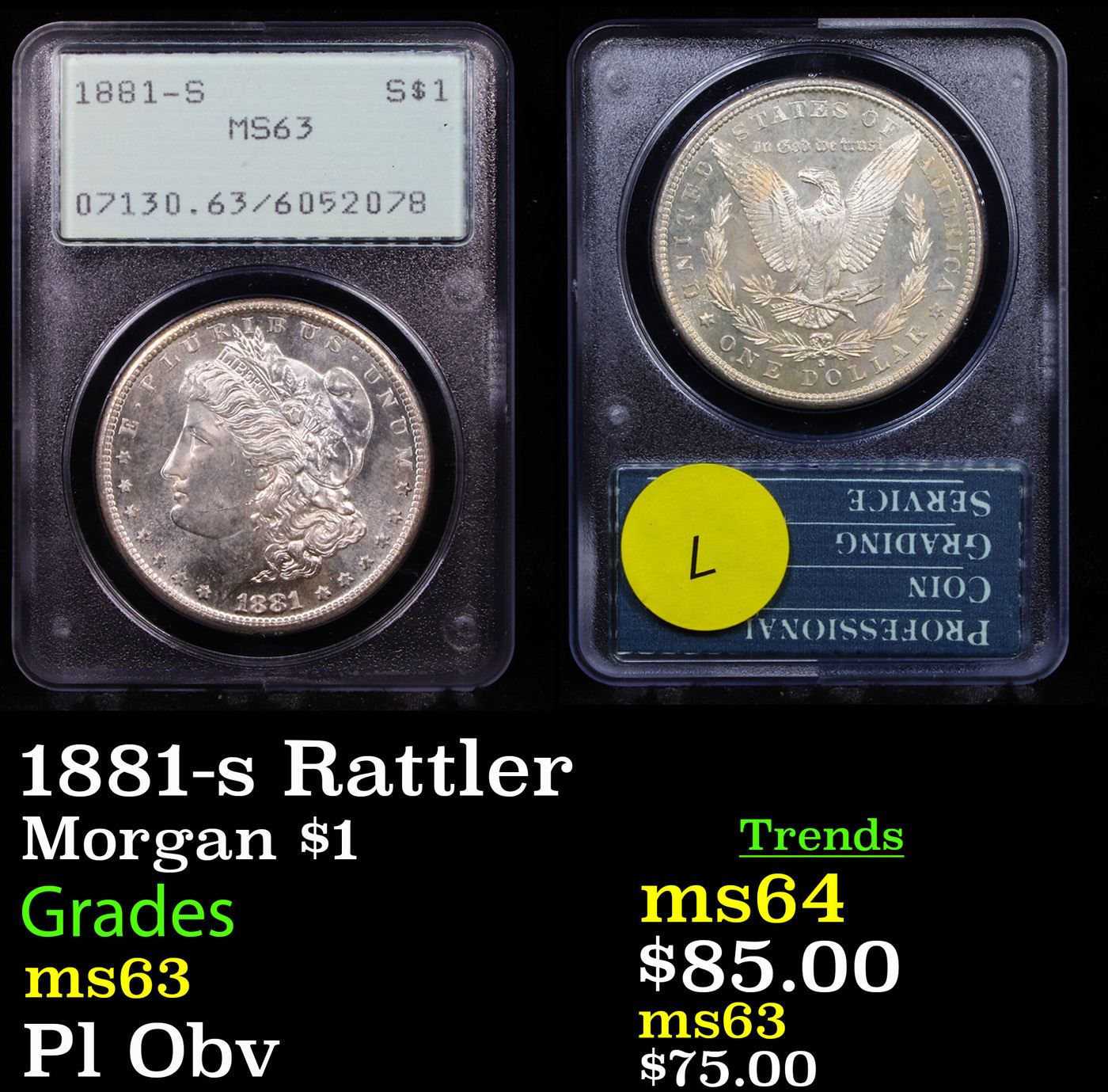 PCGS 1881-s Rattler Morgan Dollar $1 Graded ms63 By PCGS.
