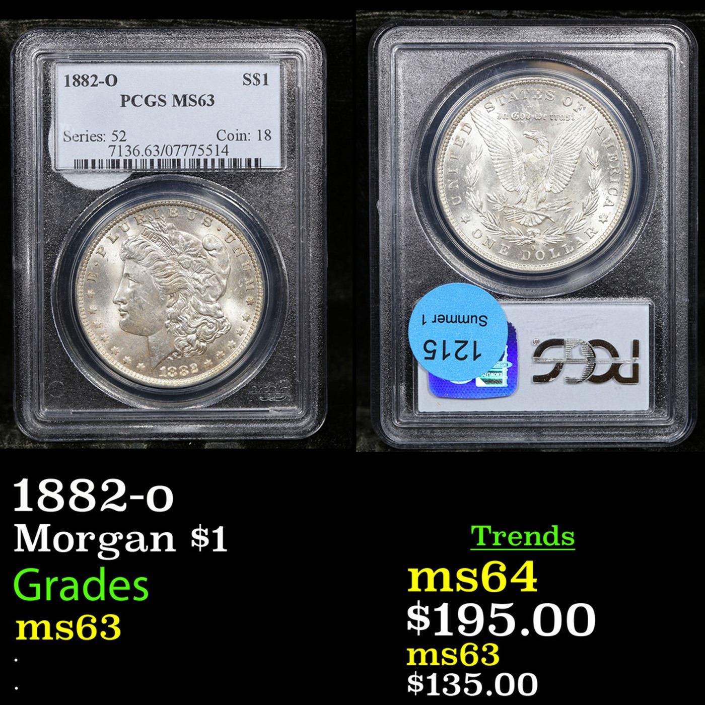 PCGS 1882-o Morgan Dollar $1 Graded ms63 By PCGS.