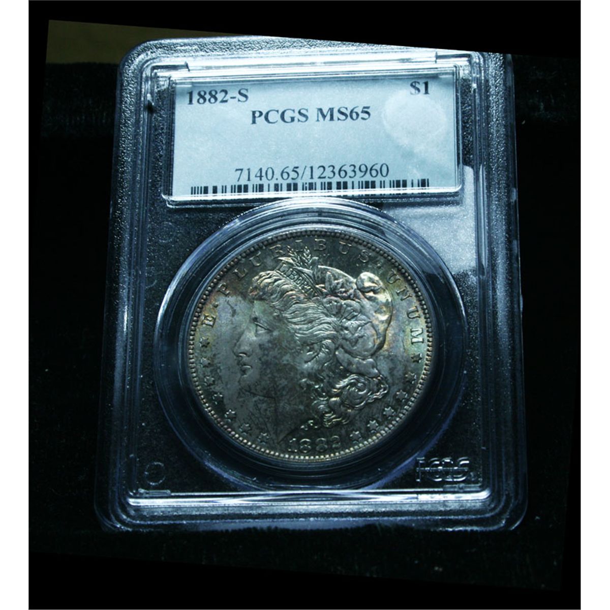 Heavily toned obverse with green, purple, gold, red and bronze. Blast white reverse. Great luster. Graded by America's #1 and harshest grading company PCGS. Estimated Value $250