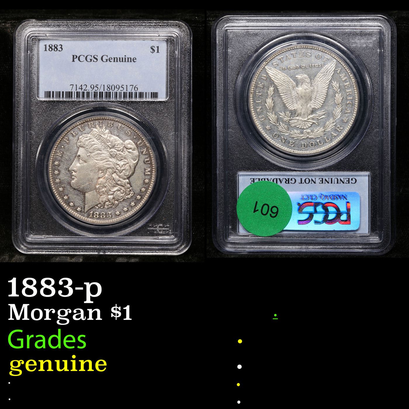 PCGS 1883-p Morgan Dollar $1 Graded genuine By PCGS.