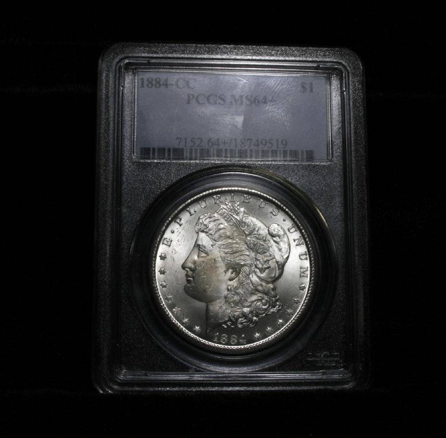 This is a stunning Frosty example. It was only recently slabbed by PCGS and has garnered their new mid grade +. It is graded ms64+ and it is easily an ms65 at any other grading company. Also this is the Spiked 8 Variety. Coin World's Coin Values lists ms64 at $300 and ms65 at $500. The Wholesale Greysheet lists ms64 at $205 and ms65 at $360. Estimated Value $325