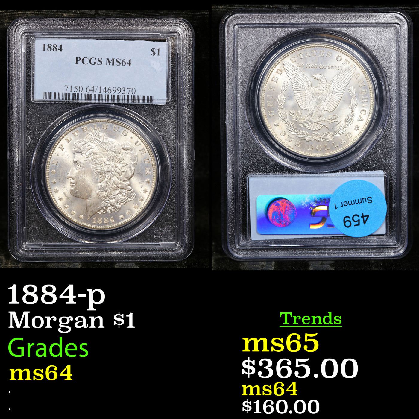 PCGS 1884-p Morgan Dollar $1 Graded ms64 By PCGS.