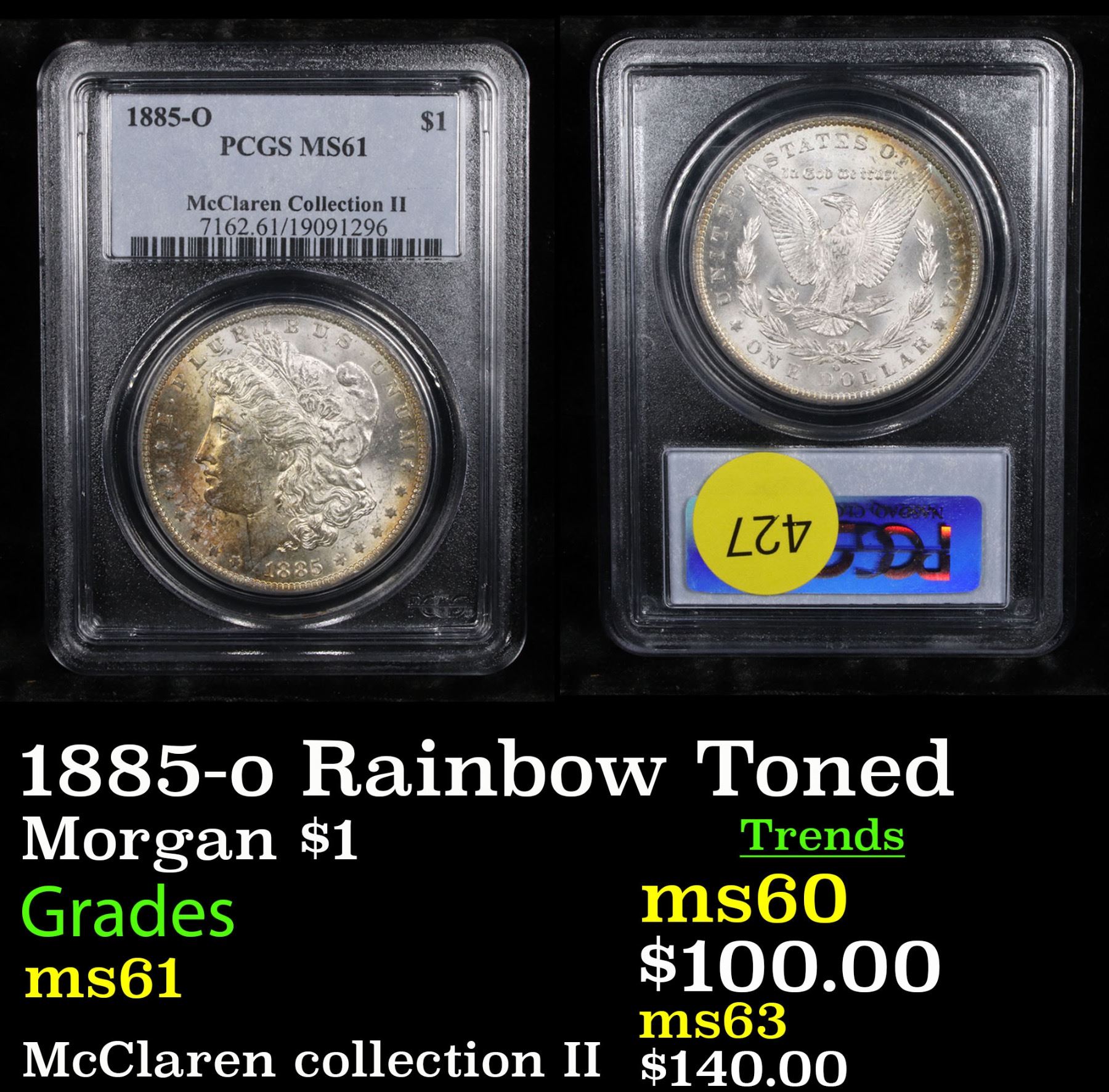PCGS 1885-o Rainbow Toned Morgan Dollar $1 Graded ms61 By PCGS.