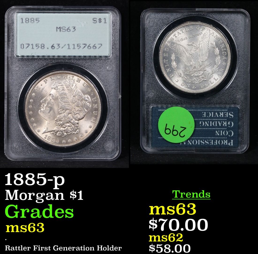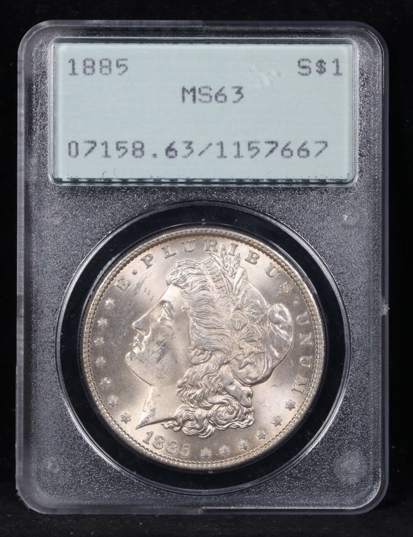 PCGS 1885-p Rattler First Generation Holder . Morgan Dollar $1 Graded ms63 By PCGS.