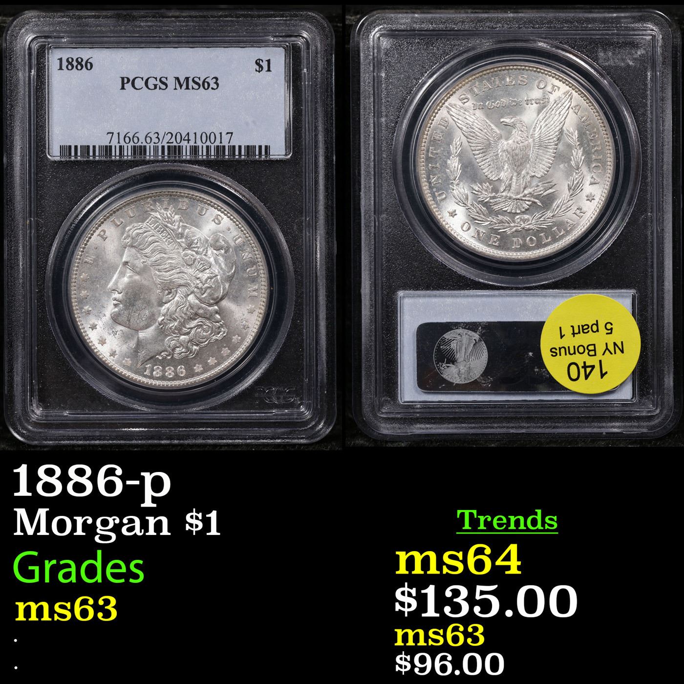 PCGS 1886-p Morgan Dollar $1 Graded ms63 By PCGS.