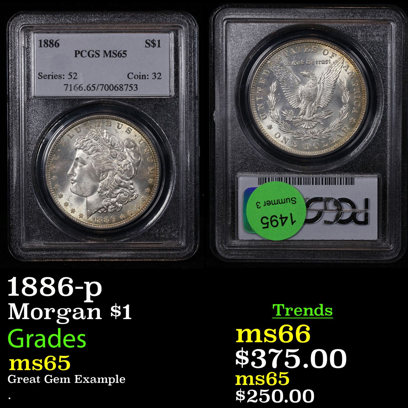 PCGS 1886-p Morgan Dollar $1 Graded ms65 By PCGS.