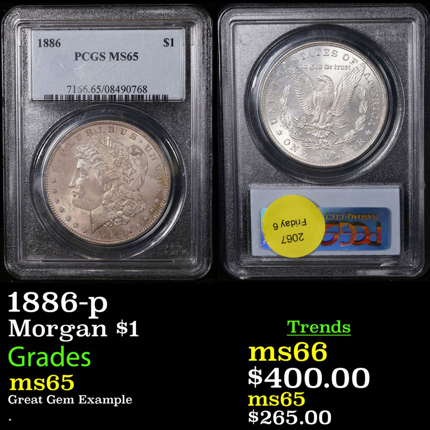 PCGS 1886-p Morgan Dollar $1 Graded ms65 By PCGS.