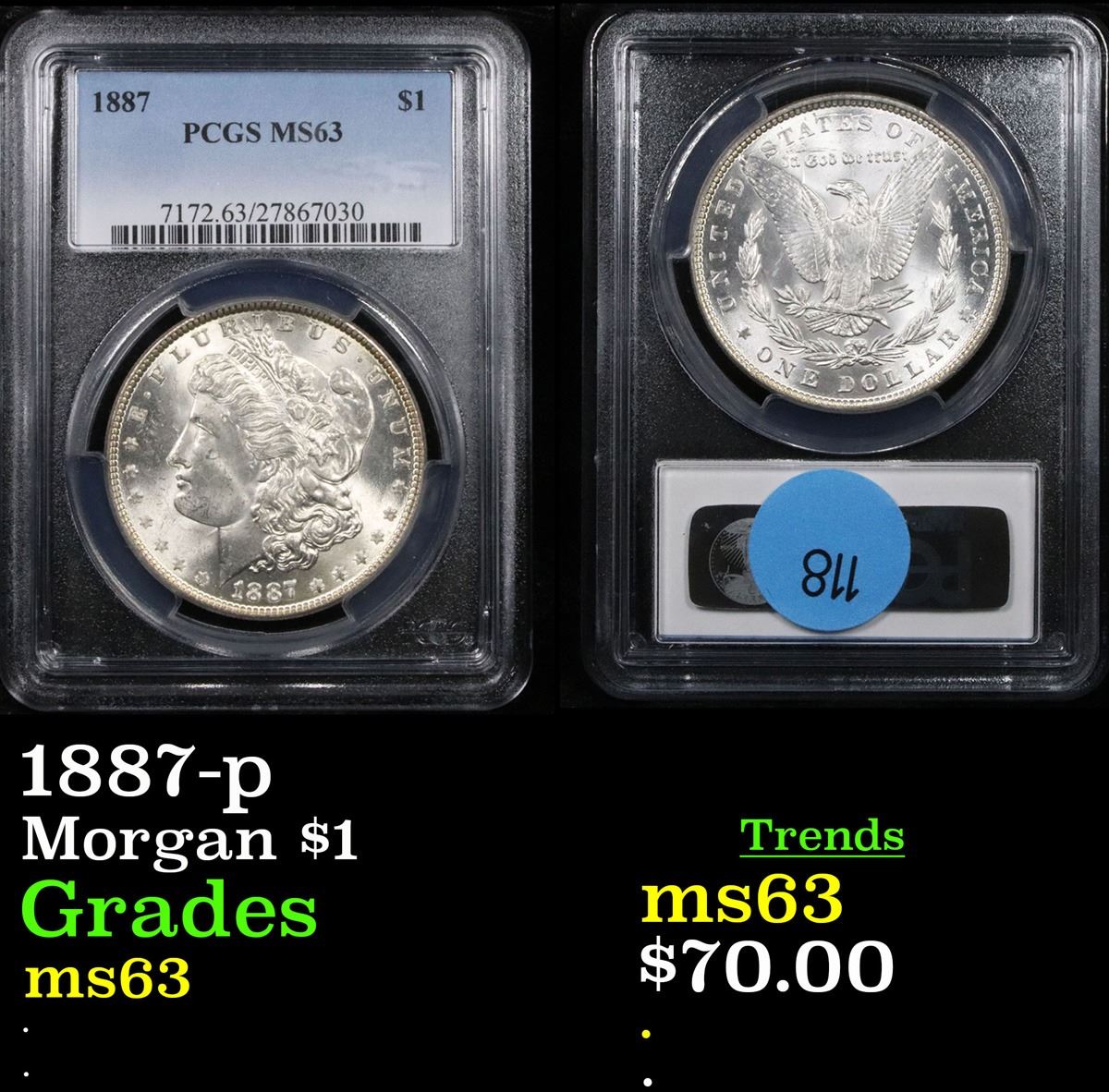 PCGS 1887-p Morgan Dollar $1 Graded ms63 By PCGS.