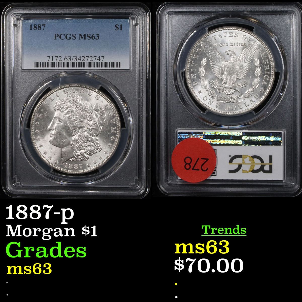 PCGS 1887-p Morgan Dollar $1 Graded ms63 By PCGS.