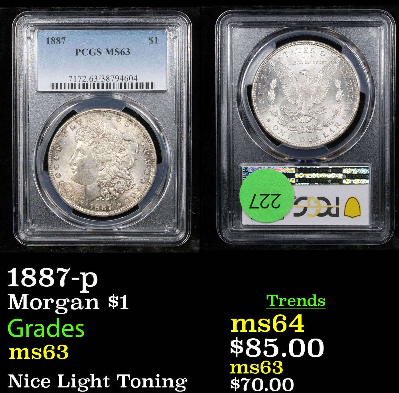 PCGS 1887-p Morgan Dollar $1 Graded ms63 By PCGS. Nice Light Toning