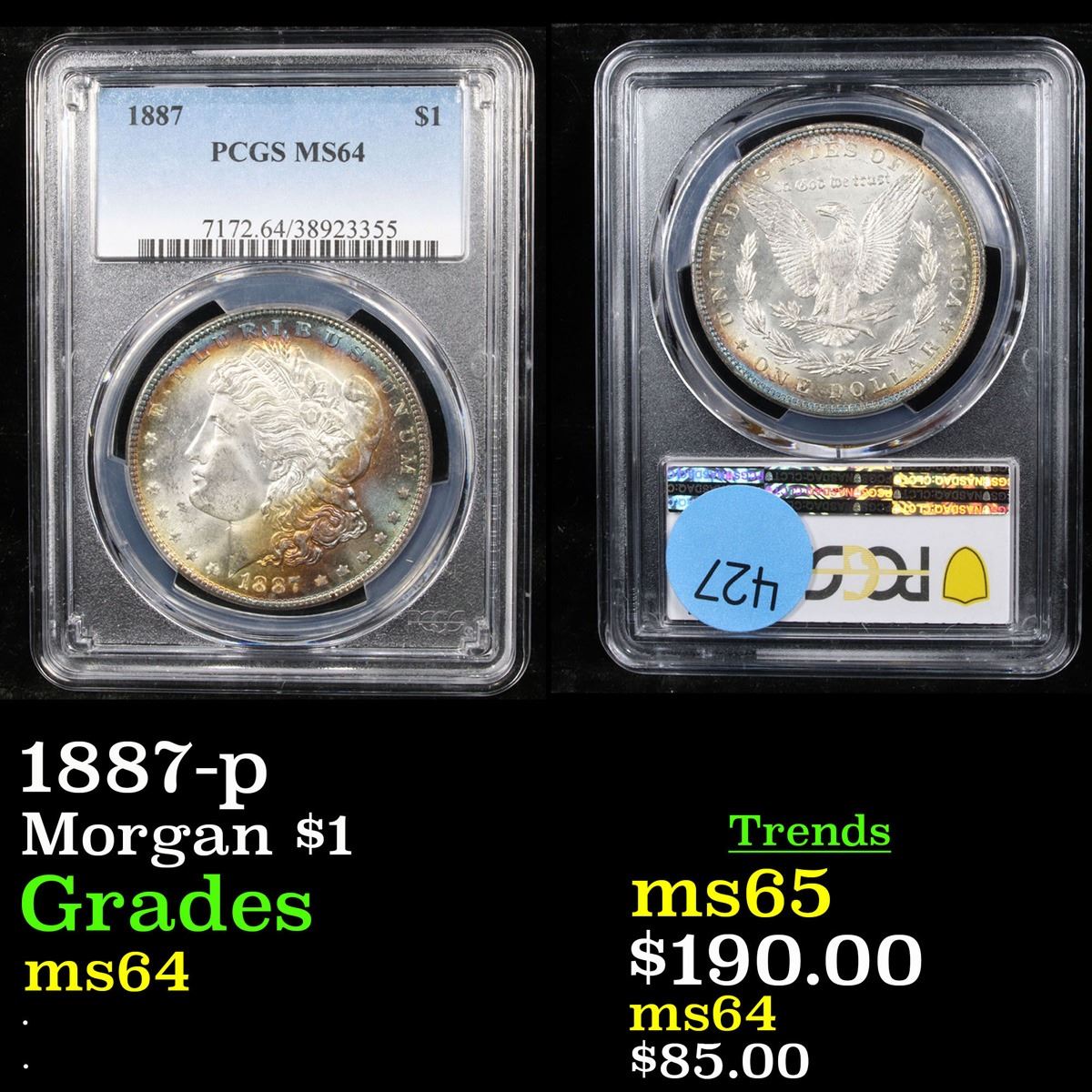 PCGS 1887-p Morgan Dollar $1 Graded ms64 By PCGS.