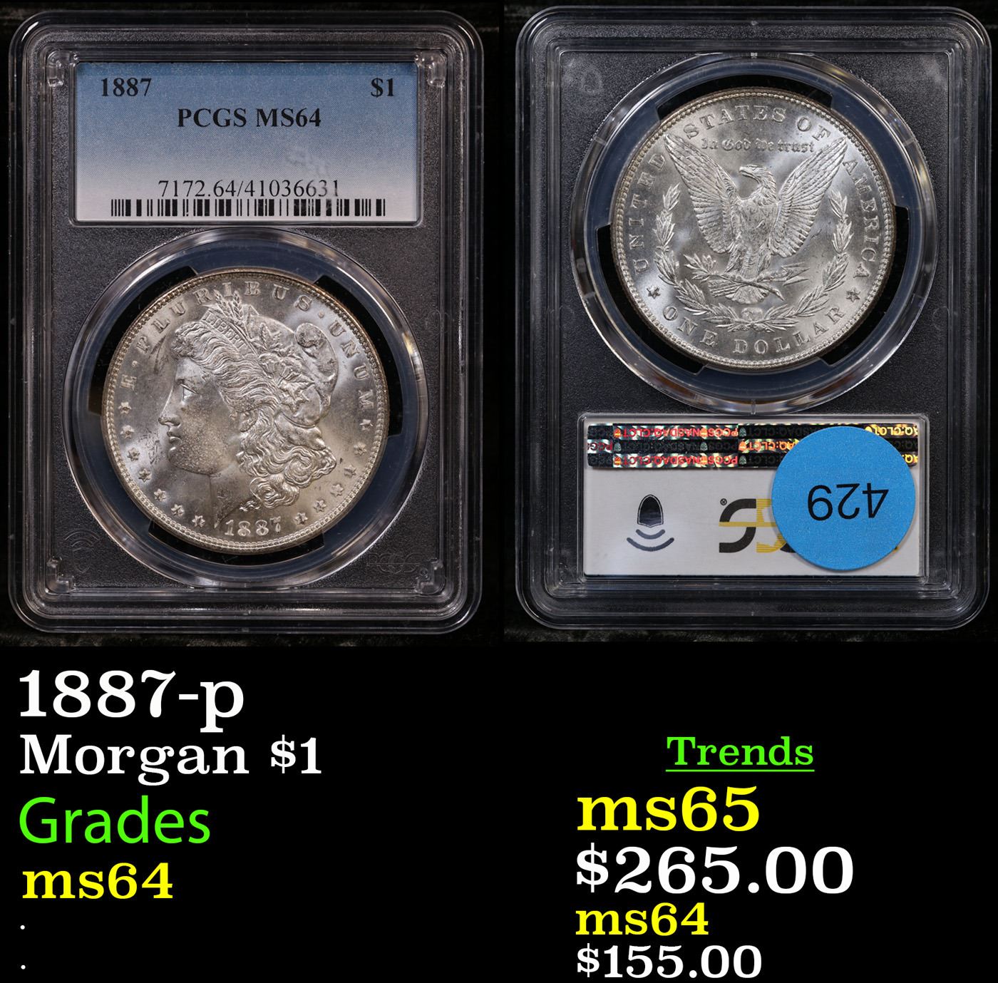 PCGS 1887-p Morgan Dollar $1 Graded ms64 By PCGS.