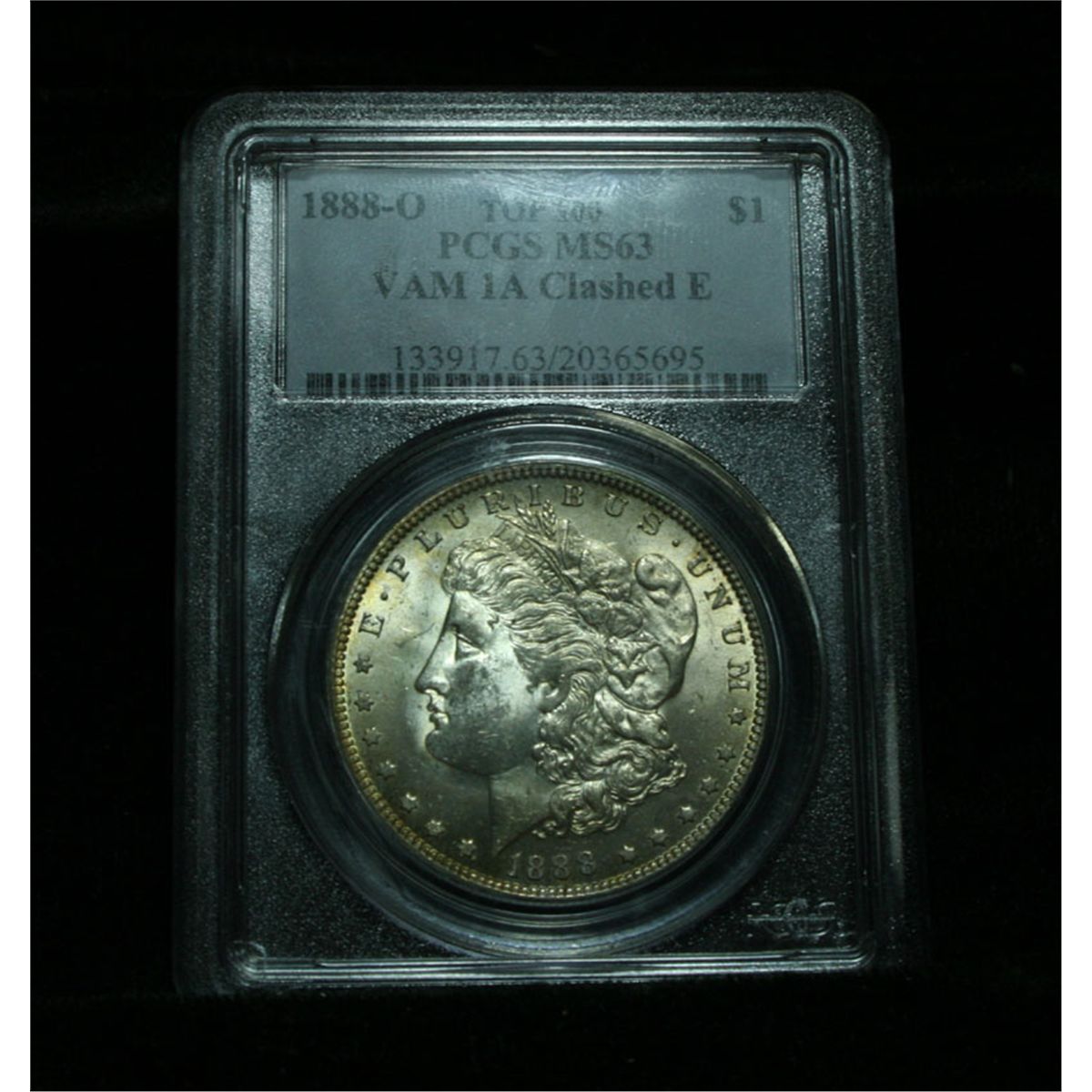 Ultra Rare, Clashed 'E' on Reverse, Top 100 VAM 1A. An exceptionally sought after and scarce variety. The coin itself is a beautifully Toned Example. It has great luster and super eye appeal. It has been Certified and graded by America's #1 and harshest grading company PCGS. After reviewing Dr. Michael Fey's "A Decade of TOP 100 Insights" I found that this variety has a 8-10x multiple of a common 1888-o. I also looked at Ebay and H and based on those sources I have come up with an Estimated Value $650