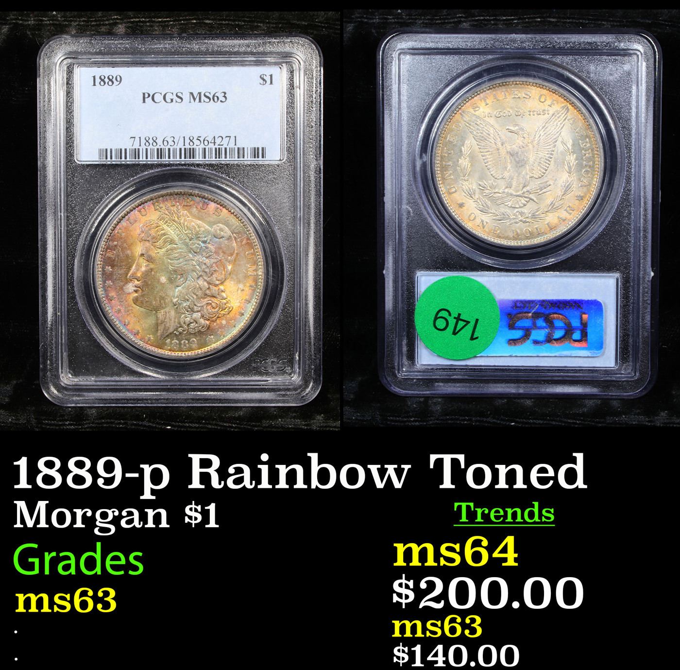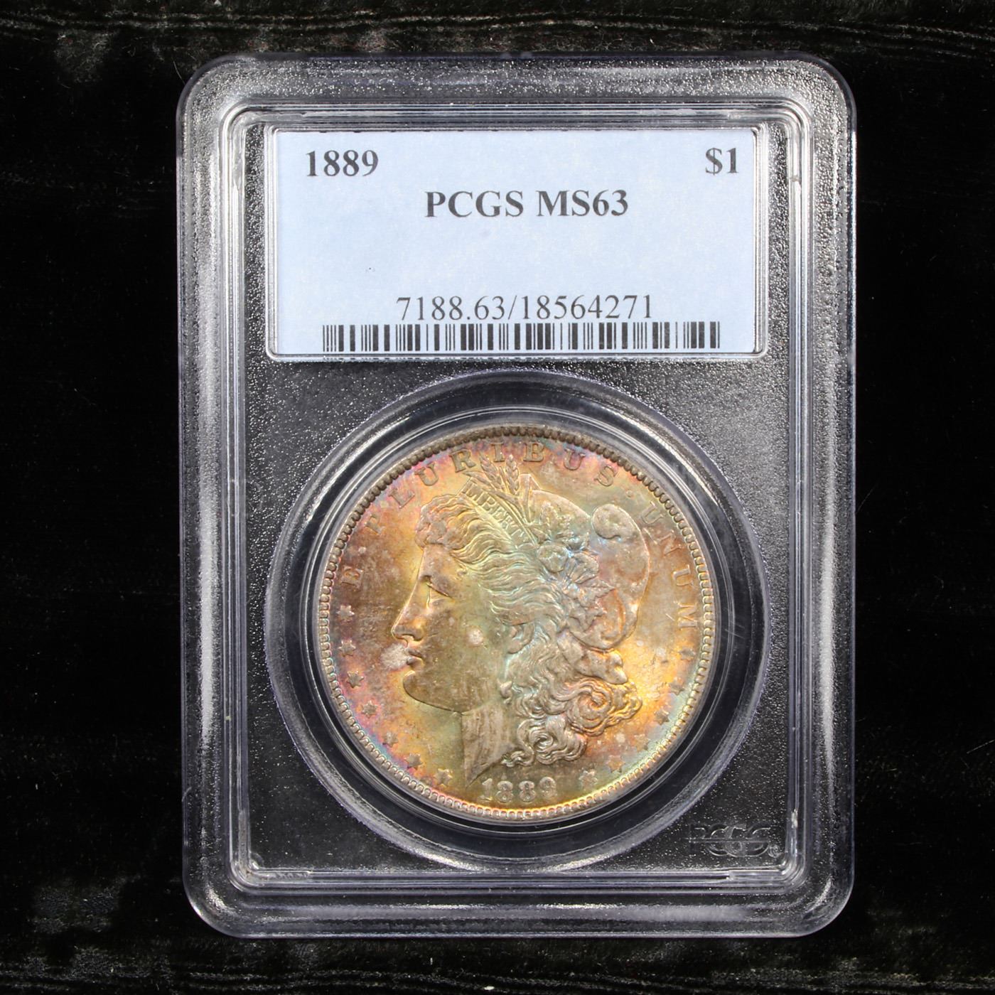 PCGS 1889-p Rainbow Toned Morgan Dollar $1 Graded ms63 By PCGS.