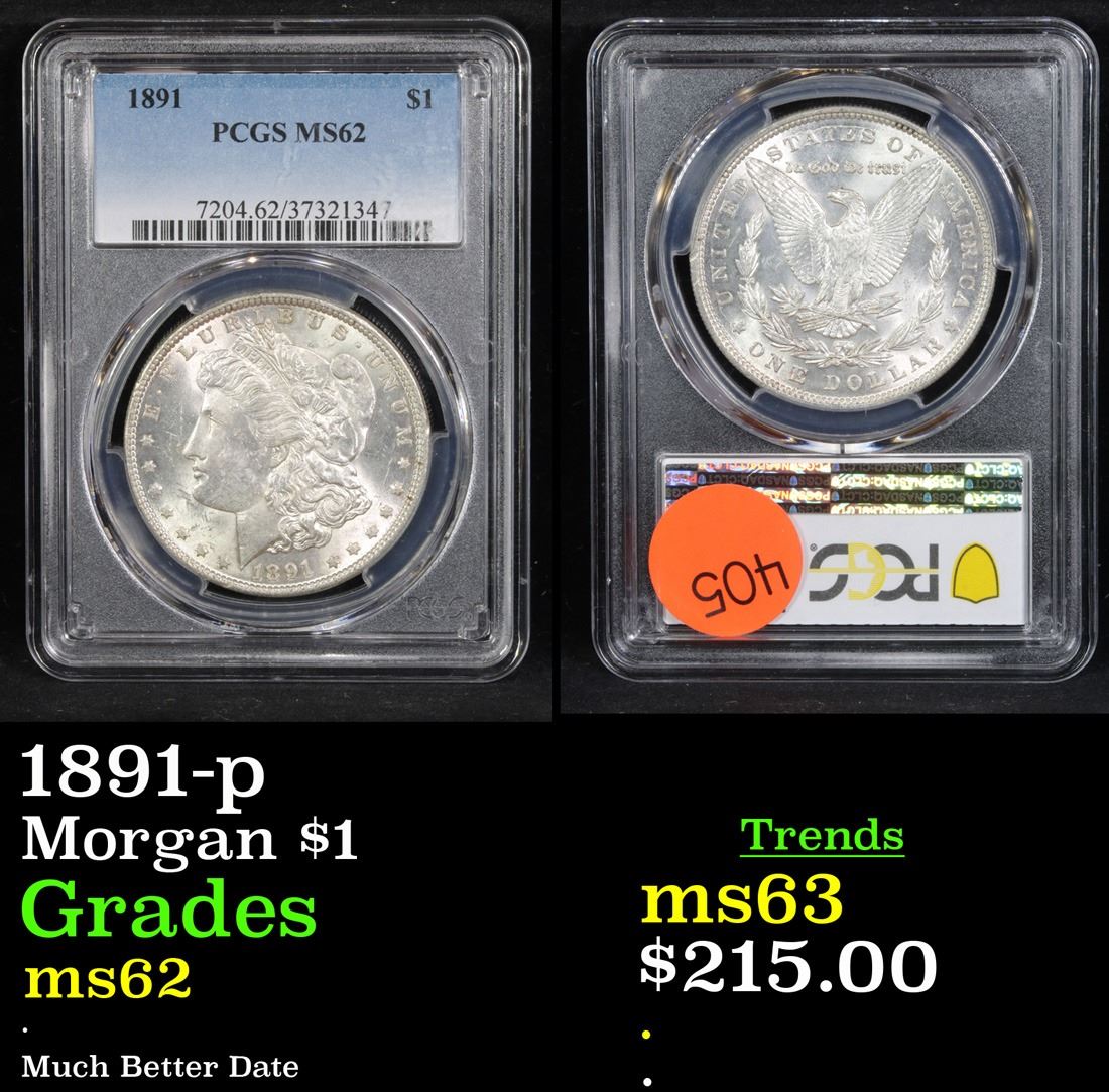 PCGS 1891-p Much Better Date . Morgan Dollar $1 Graded ms62 By PCGS.
