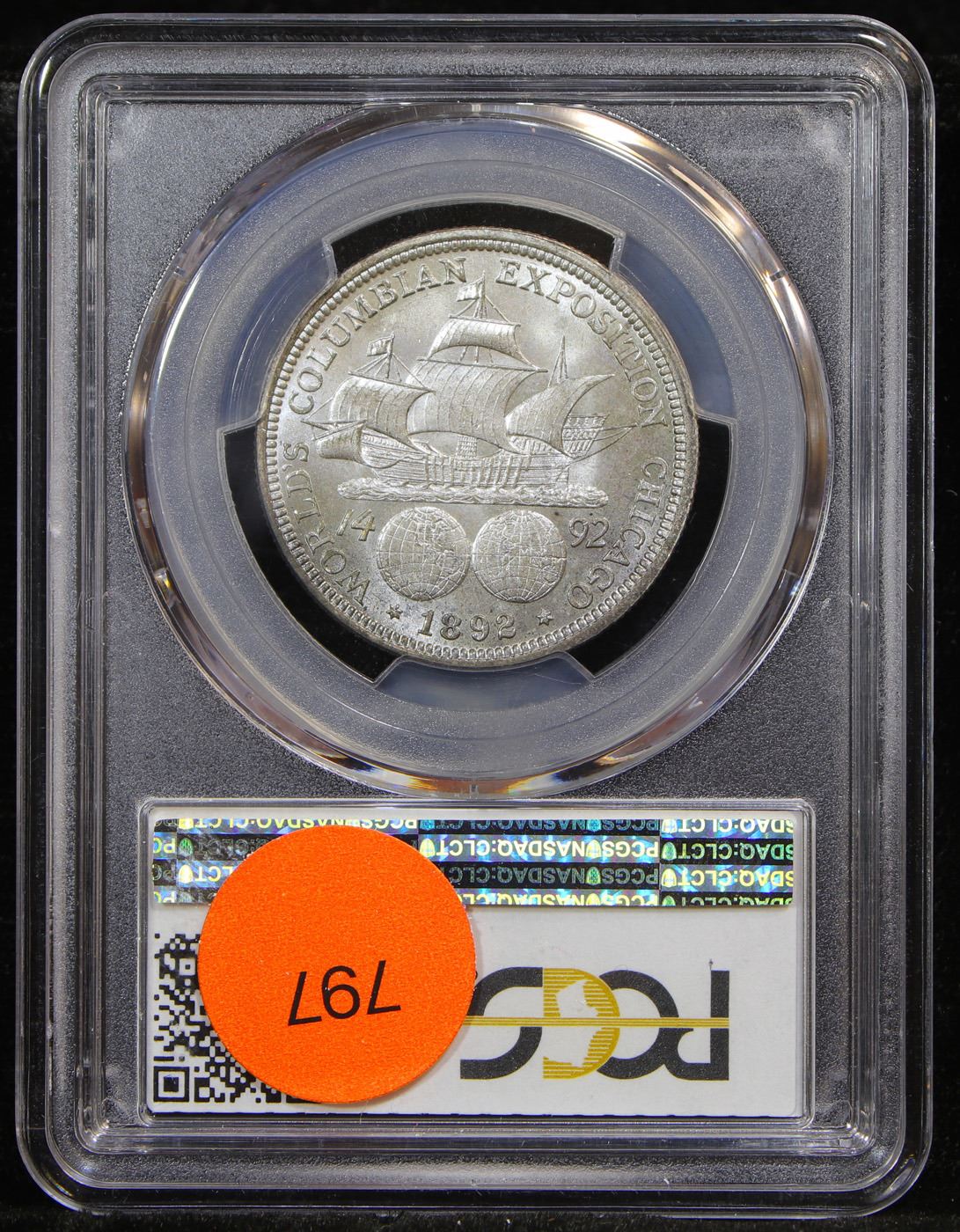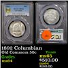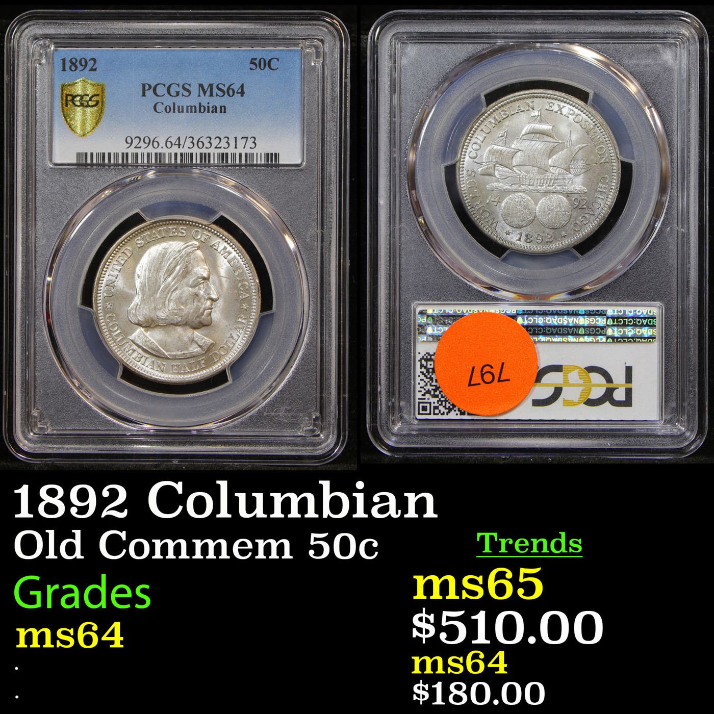 PCGS 1892 Columbian Old Commem Half Dollar 50c Graded ms64 by PCGS. The Columbus Half Dollar along with the Isabella Quarter were Minted in Honor of the 400th Anniversary of Columbus' Voyage to the New World. It was First Distributed at the Worlds Fair Honoring that Voyage. When Examining a Columbian Exposition Half Dollar, the First Points to Show Wear are Columbus’ Eyebrow, Cheek and the Hair Behind his Forehead and Jaw. On the Reverse, Check the Foresail and Sainsail, as well as the Right Side of the Eastern Hemisphere.