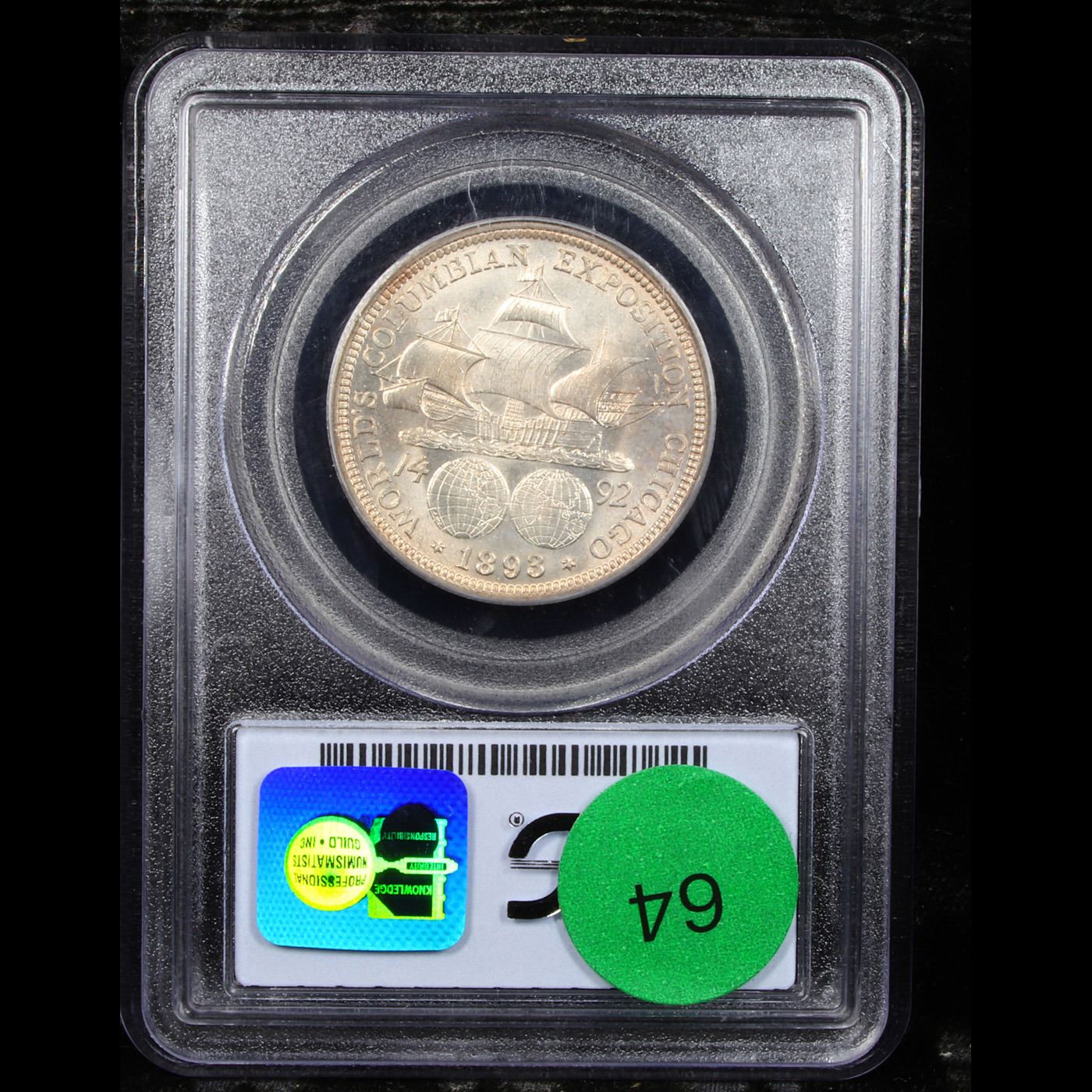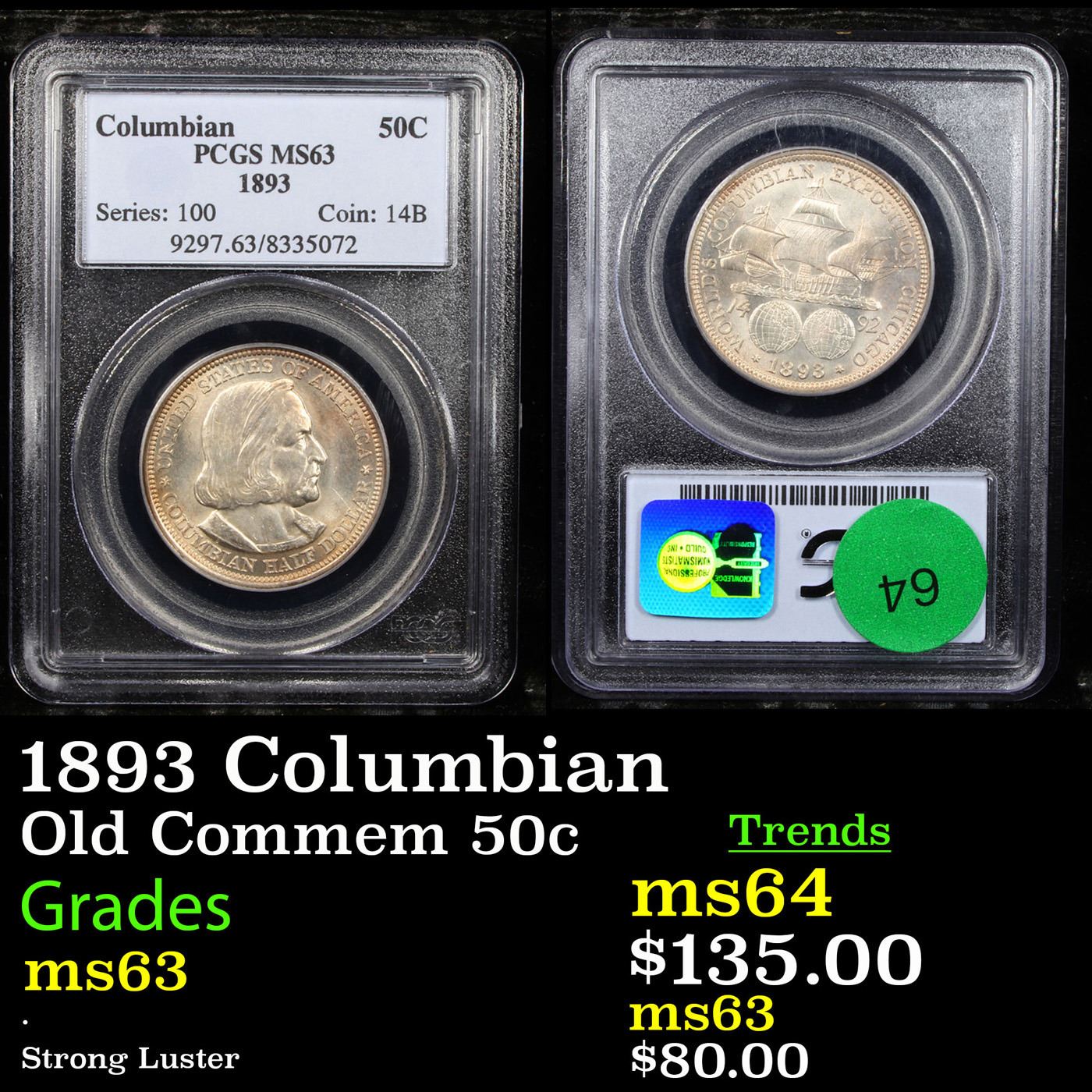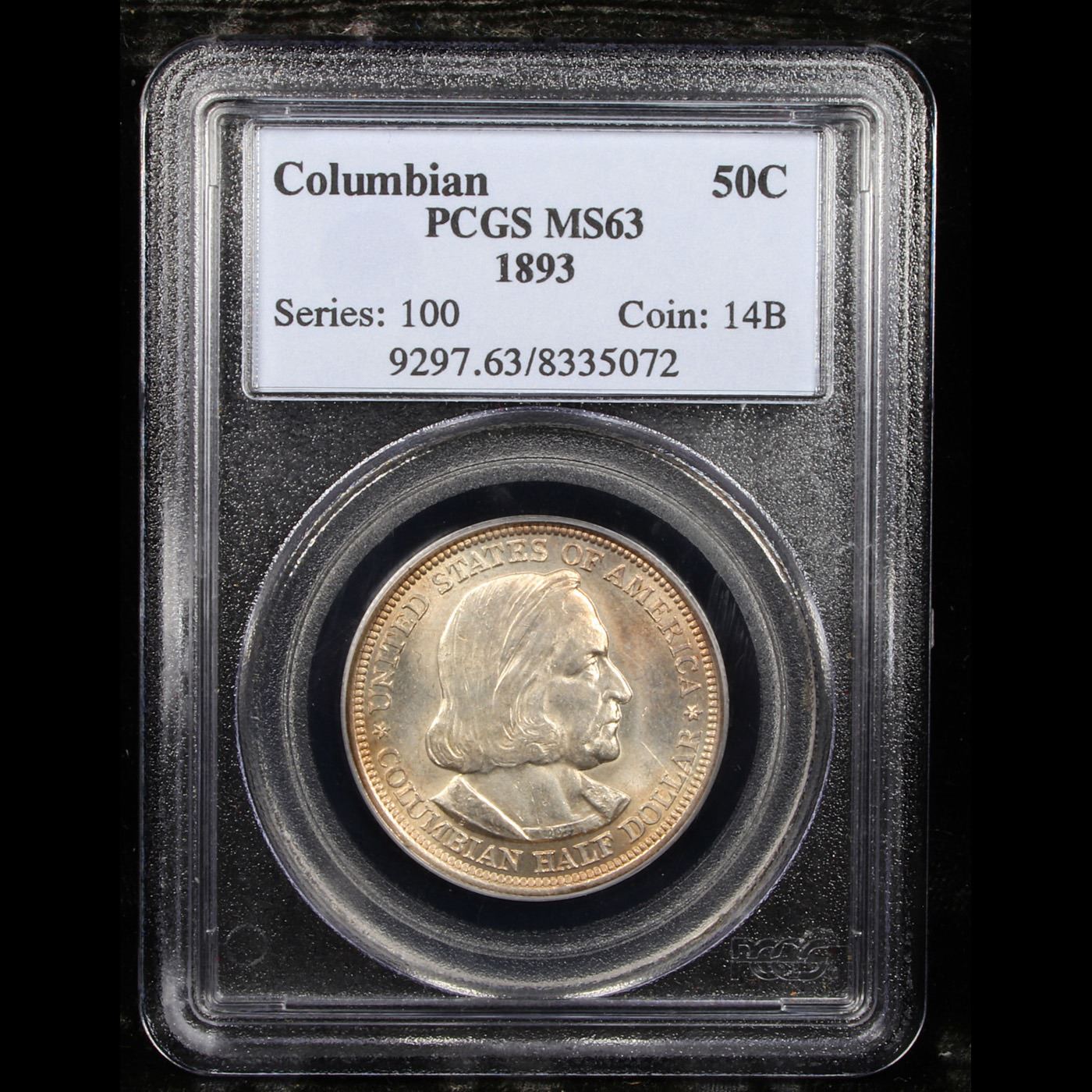 PCGS 1893 Columbian Old Commem Half Dollar 50c Graded ms63 By PCGS. The Columbus Half Dollar along with the Isabella Quarter were Minted in Honor of the 400th Anniversary of Columbus' Voyage to the New World. It was First Distributed at the Worlds Fair Honoring that Voyage. When examining a Columbian Exposition Half Dollar, the First Points to Show Wear are Columbus’ Eyebrow, Cheek and the Hair Behind his Forehead and Jaw. On the Reverse, Check the Foresail and Sainsail, as well as the Right Side of the Eastern Hemisphere.
