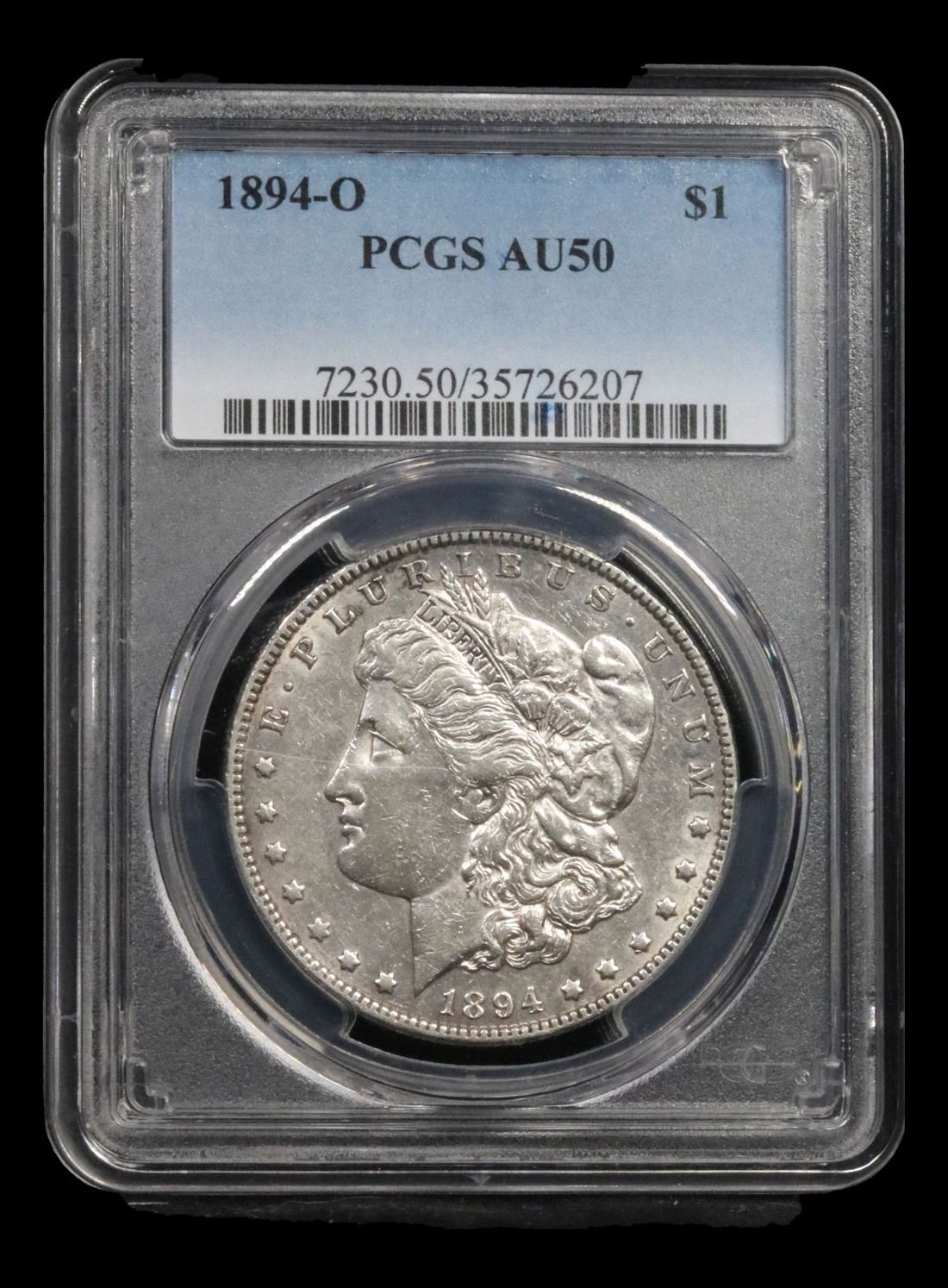 PCGS 1894-o Morgan Dollar $1 Graded AU, Almost Unc By PCGS.