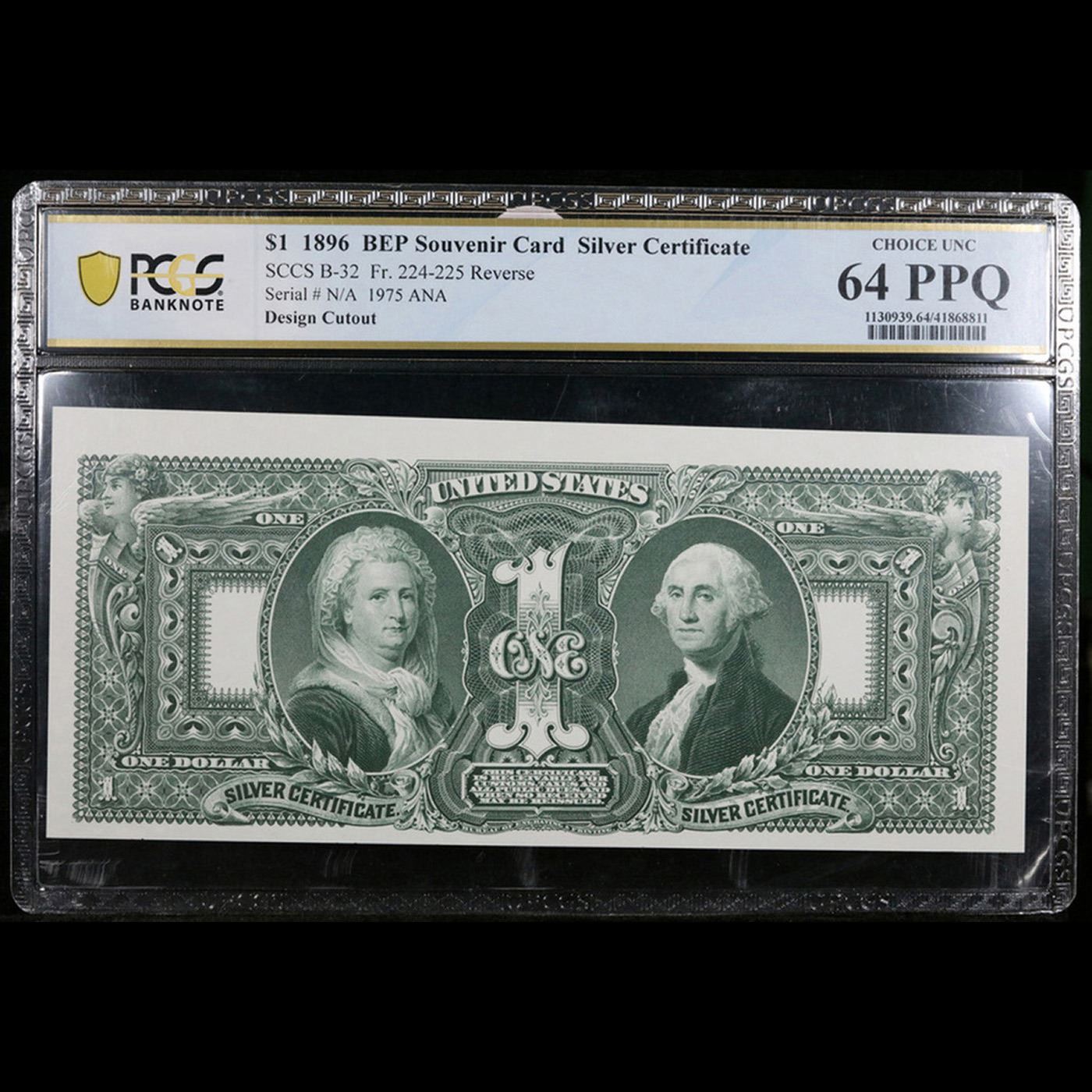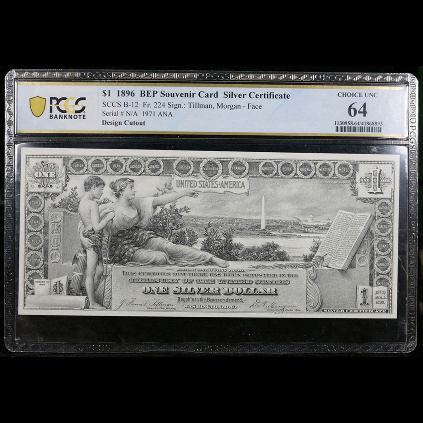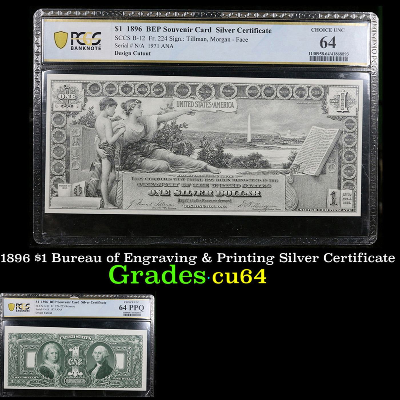 PCGS 1896 $1 Bureau of Engraving & Printing Silver Certificate Graded cu64 By PCGS. Up for auction is a Bureau of Engraving and Printing (BEP) Proof Print . It is printed using the original Plates from the Bureau of Engraving and Printings archives. It was printed on two separate strikes, for the front and the back. It lacks serial numbers, but otherwise is a perfect proof of the Incredibly rare Piece of Currency.