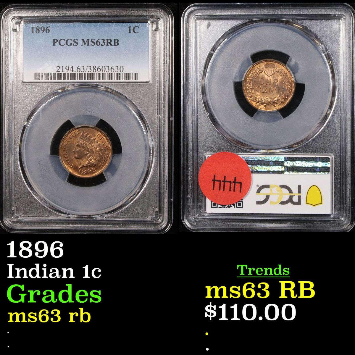 PCGS 1896 Indian Cent 1c Graded ms63 rb By PCGS.
