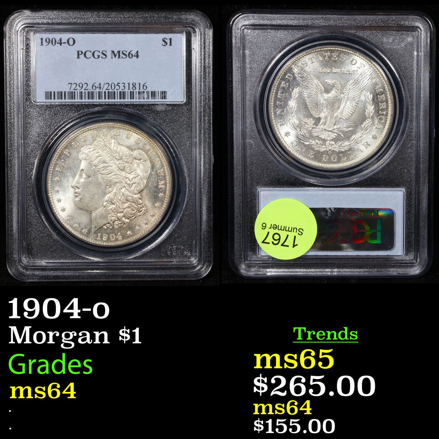 PCGS 1904-o Morgan Dollar $1 Graded ms64 By PCGS.