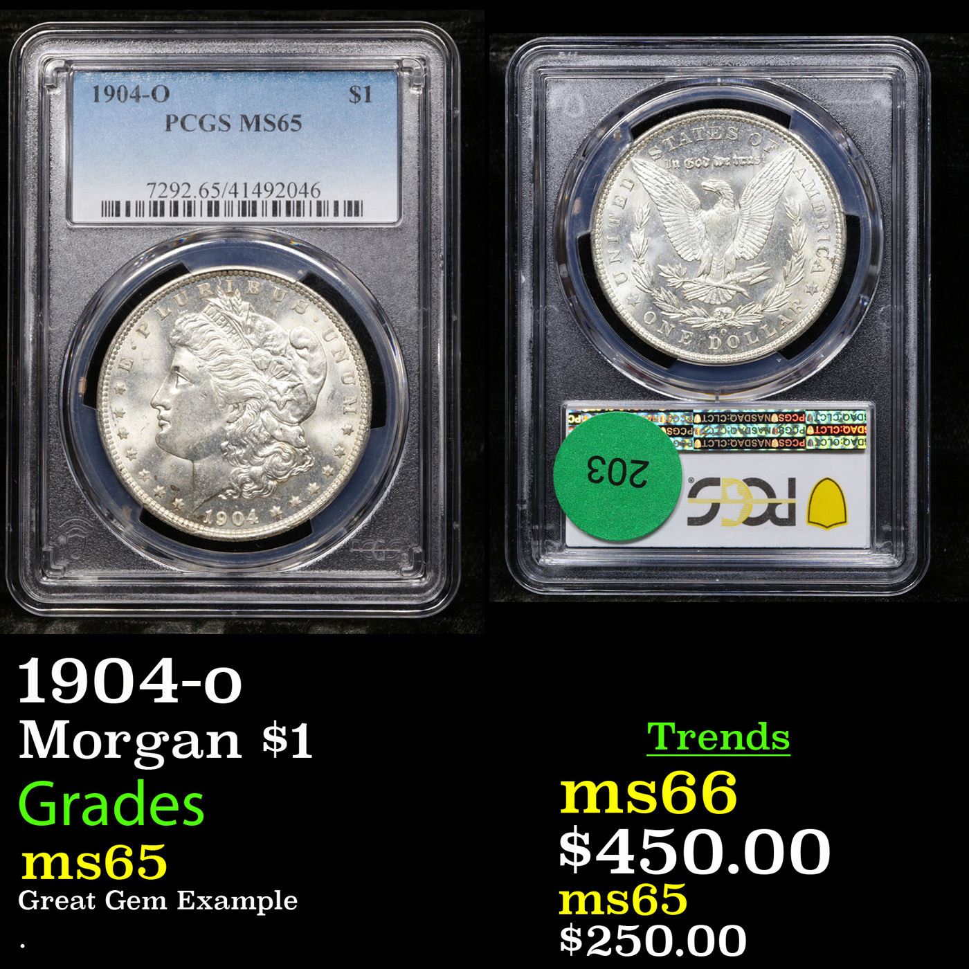PCGS 1904-o Morgan Dollar $1 Graded ms65 By PCGS.