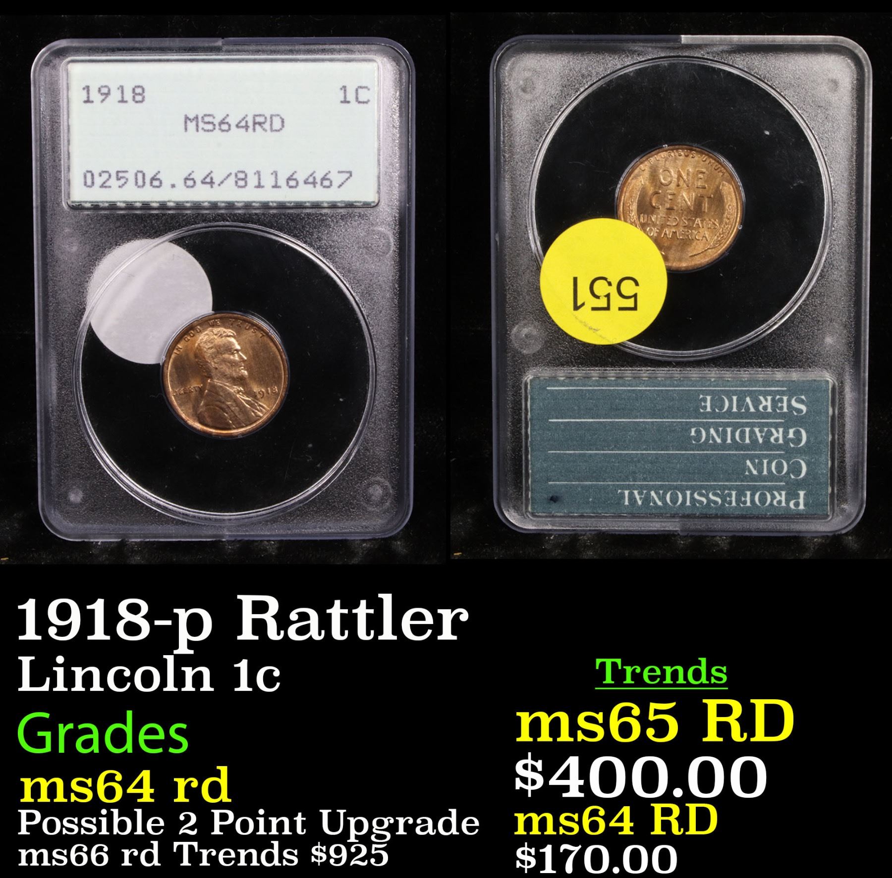 PCGS 1918-p Rattler Lincoln Cent 1c Graded ms64 rd By PCGS.