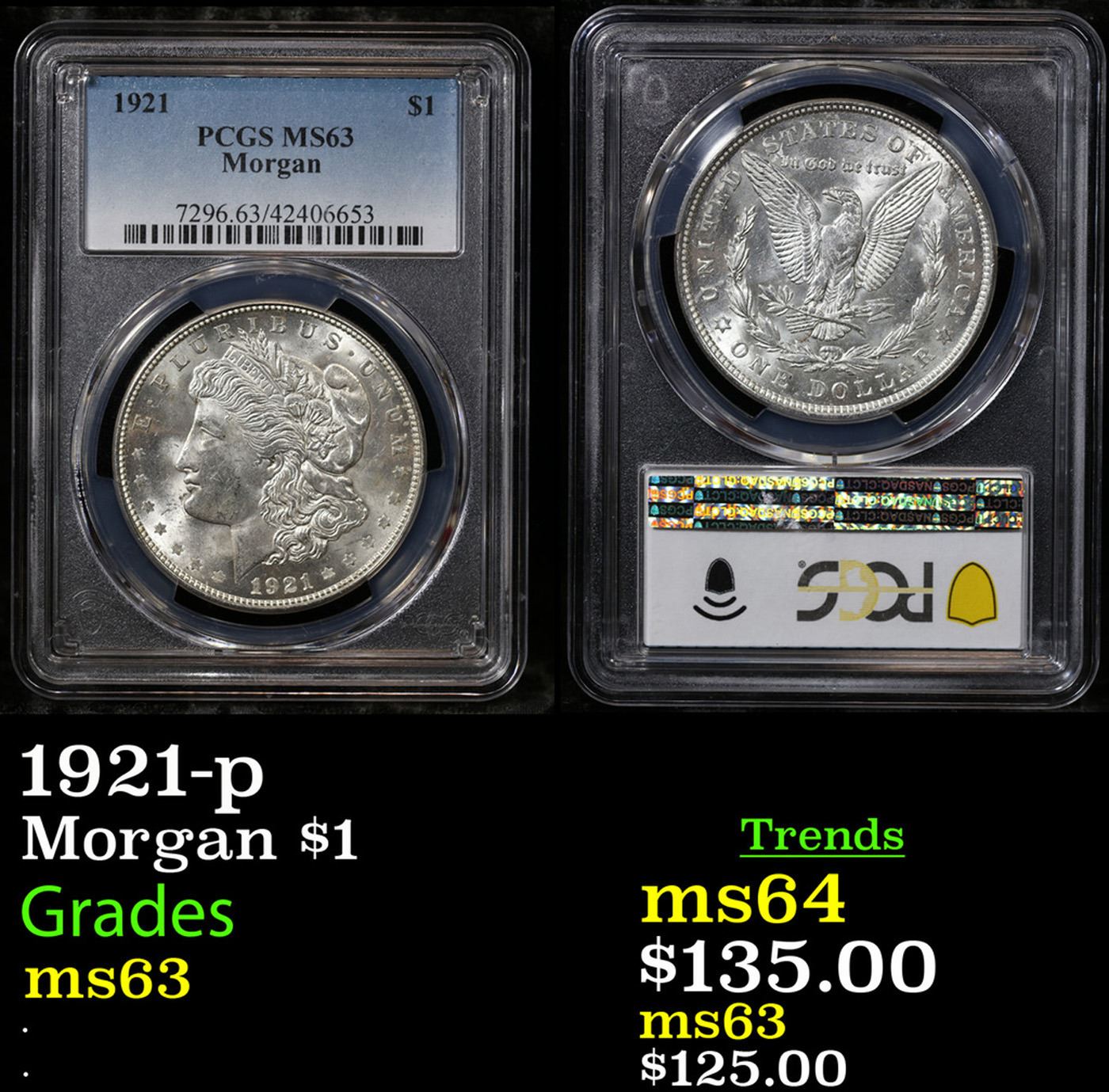 PCGS 1921-p Morgan Dollar $1 Graded ms63 By PCGS.